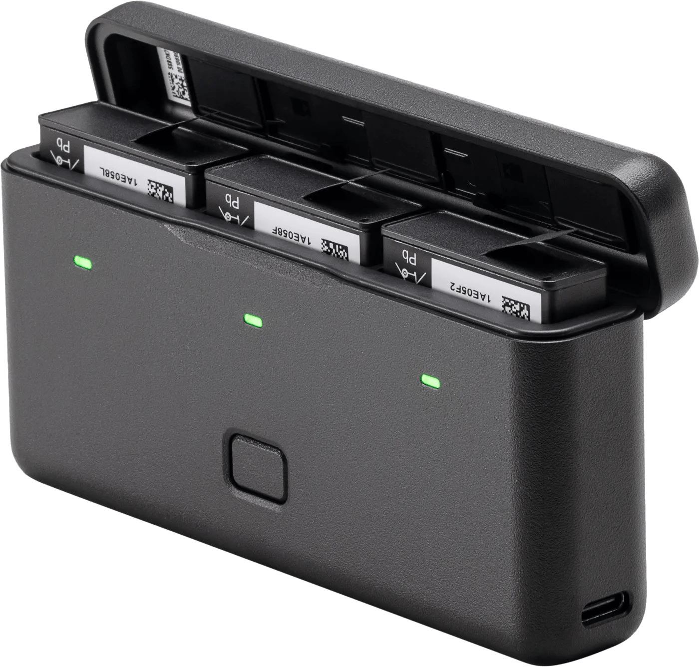 Met de DJI Osmo Action Battery Case laad je 3 accu's van jouw DJI Osmo Action op. Zo heb je genoeg stroom voor een hele dag filmen. Als je de opgeladen accu's niet gebruikt, stop je ze in de case en gebruik je de accu's als powerbank voor je smartphone. In de case zitten 2 gleufjes voor je micro SD kaarten. Op die manier raak je ze minder snel kwijt. De case is geschikt voor accu's van de DJI Osmo Action 3 en Osmo Action 4. Let op: er worden geen accu's meegeleverd.