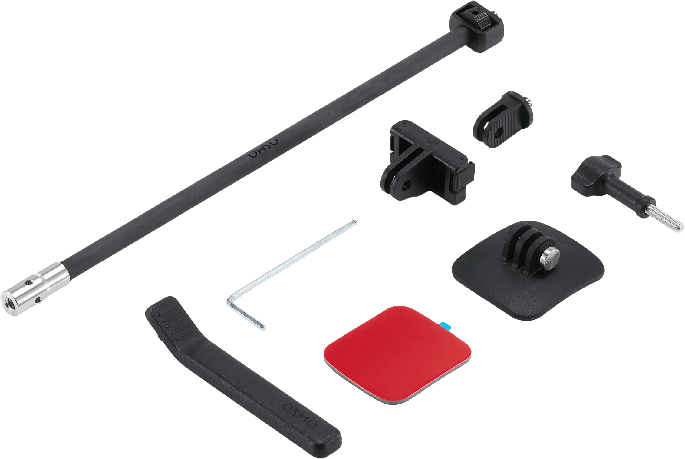 Met de DJI Osmo Third Person Helmet Mount Kit zet je jouw DJI Osmo camera op je helm. Hierdoor lijkt het alsof iemand anders jou filmt, bijvoorbeeld tijdens het skiën of fietsen. Je krijgt een selfie stick en gebogen bevestigingen die je op je helm plakt. Dankzij het carbon materiaal van de selfie stick, buigt hij niet zomaar door. Dit maakt hem geschikt tijdens sportieve activiteiten of activiteiten met snelheid.