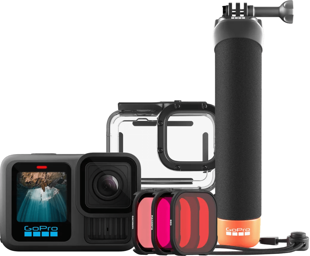 Leg de wereld onderwater vast met de GoPro HERO 13 Black Duikkit. Naast de GoPro HERO 13, ontvang je een PolarPro Divemaster filterset, GoPro Handler en GoPro Protective Housing. De filterset geeft je videobeelden een natuurlijke kleur. De rode kleur van de filters haalt de blauwe gloed van het water uit je opnames. Met de Handler neem je de action camera mee onderwater. Als je hem per ongeluk loslaat, blijft hij drijven en raak je hem niet meteen kwijt. Ga je duiken op meer dan 10 meter, dan heb je de Protective Housing nodig. Deze behuizing maakt je action camera waterdicht tot 60 meter. De GoPro HERO 13 Black heeft een langere accuduur dan zijn voorgangers. In de hoogste beeldkwaliteit film je maximaal 90 minuten. Via de GPS data houdt de camera onder andere je snelheid, route en hoogtemeters bij. Deze gegevens voeg je later als overlay toe aan je video. Dit is interessant voor sporten met hoge snelheden. Je filmt in 5.3K met 60 frames per seconde. Hierdoor zien je video's er haarscherp en vloeiend uit.