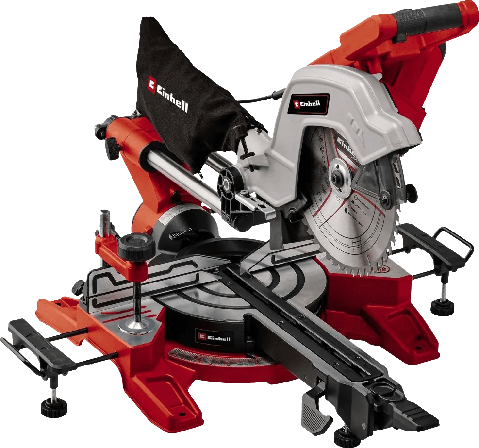 Met de Einhell TE-SM 10 L Dual voer je middelgrote zaagklussen uit. Op de elektrische afkortzaag past een zaagblad met een doorsnede van 254 millimeter. Je komt hierdoor tot 85 millimeter diep als je recht zaagt. Ook balken tot 305 millimeter breed zaag je zonder problemen door. Kantel de zaagkop naar links of rechts en zaag ook schuin (in verstek). Dat is handig als je wil dat 2 plinten in een hoek op elkaar aansluiten. Door de tafelverbreding krijgt lang materiaal extra ondersteuning. Je legt daardoor zonder problemen lange balken of plinten op de afkortzaag. Ook zaag je zonder moeite recht met de handige lasergeleider.