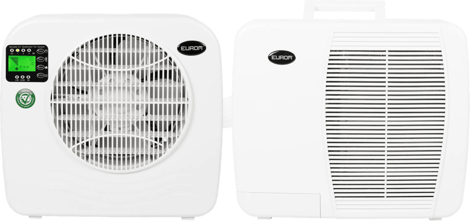 De Eurom AC3201 E is een kleine split airco die goed past in je caravan of camper. Je plaatst de binnenunit in de caravan en de buitenunit aan de buitenkant. Deze zet je vast met de meegeleverde montagebeugels. De units zijn verbonden met een koelleiding van éen meter. Met een koelvermogen van 3.200 BTU en 4 standen koel je ruimtes tot 8 vierkante meter op een gelijke manier. Je kiest de juiste stand via het scherm. Met de timer kies je wanneer de airco aan- of uitgaat, tot 24 uur van tevoren. Het geluidsniveau ligt tussen 49,8 en 55 decibel. De airco werkt ook als luchtontvochtiger, zodat de lucht binnen fris en droog blijft.
