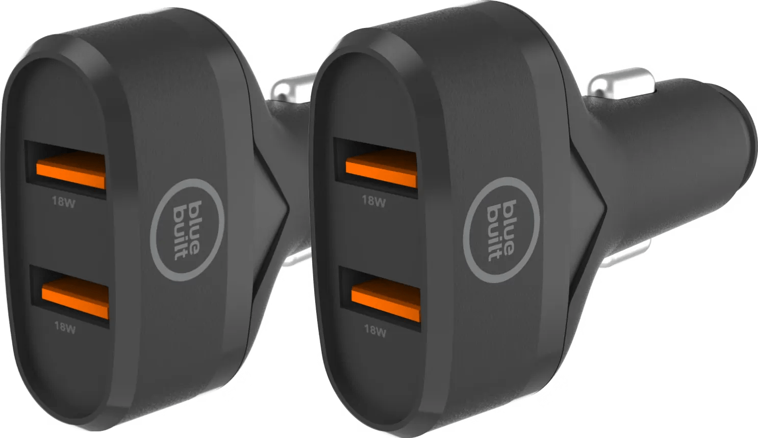BlueBuilt Quick Charge Autolader met 2 Usb A Poorten 18W Zwart Duo Pack