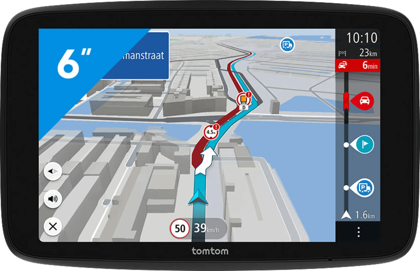 Navigeer veilig met je vrachtwagen naar iedere bestemming ter wereld met de TomTom Go Expert Plus 6 Wereld. Op het anti reflecterende 6 inch scherm zie je duidelijk welke kant je opgaat, ook als de felle zon op het scherm schijnt. Je voert de afmetingen, het gewicht en de lading van je vrachtwagen in. Zo voorkom je dat je langs te lage viaducten of scherpe bochten wordt gestuurd. Rijd jij met verschillende voertuigen? Je slaat meerdere voertuigprofielen op. Hierdoor hoef je niet steeds opnieuw de gegevens van je voertuig in te voeren om voor jou geschikte routes te krijgen. Je bedient dit navigatiesysteem met je stem, dus je houdt altijd je ogen op de weg. Het is niet mogelijk om handsfree te bellen, dus je belt niet in de auto. Let op: De batterij van je autonavigatie is niet gemaakt om lang mee te gaan. Sluit daarom altijd je oplaadkabel aan voor vertrek.