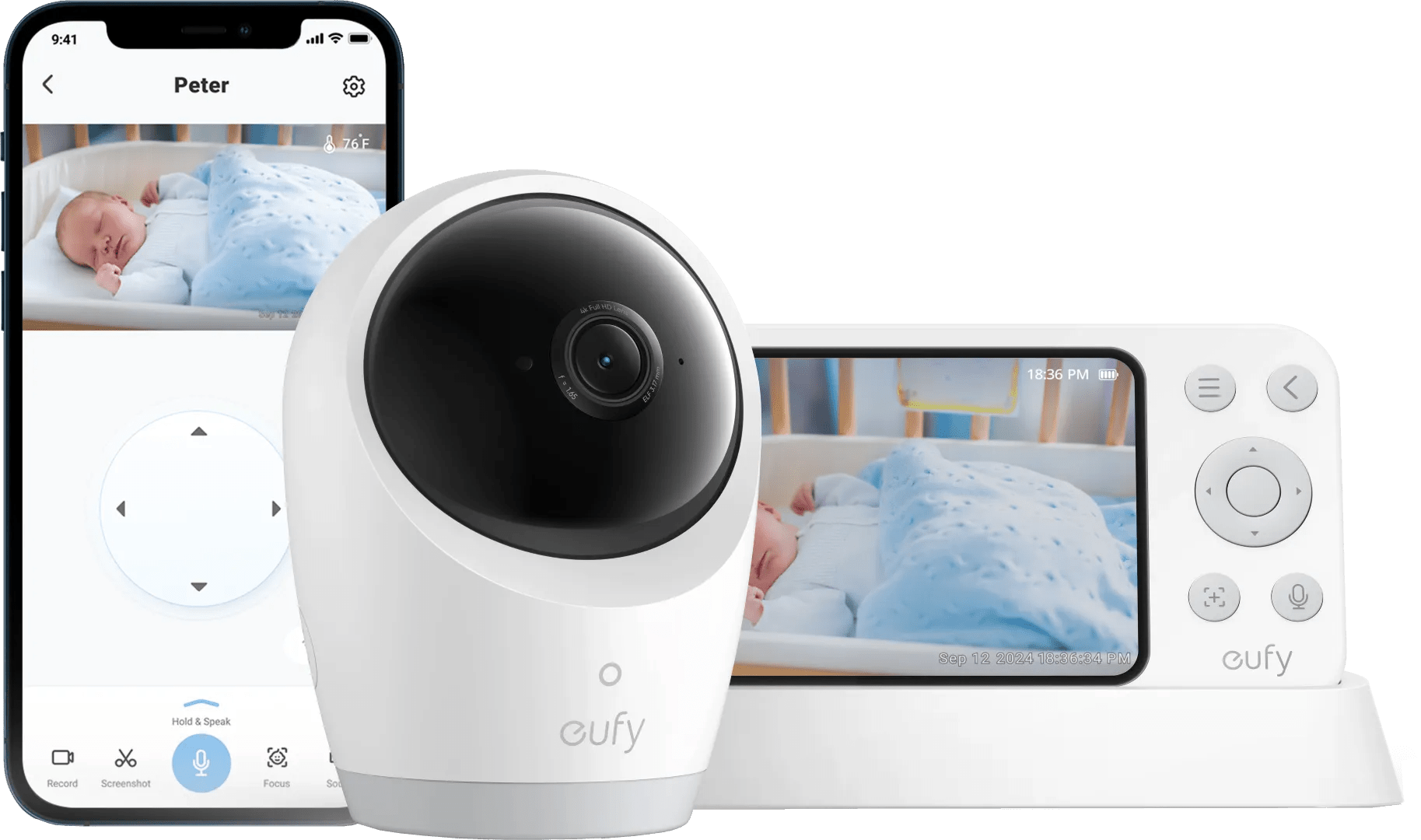 Met de Eufy Baby Monitor E21 houd je jouw kindje goed in de gaten dankzij het extra scherpe beeld van de ouderunit. Het display heeft een scherpte van 4K en je zoomt tot 8 keer in. Hierdoor zie je elk detail. Dankzij de camera met nachtzicht zie je zelfs in het donker alles goed. Je verbindt de babyfoon met de Eufy Baby app. Via de app houd je jouw kind gemakkelijk overal in de gaten. Zo bekijk je jouw kindje bijvoorbeeld ook als je aan het werk bent. In de app maak je ook screenshots of opnames van je baby. Je legt zo mooie momenten vast. De ouderunit gaat 12 uur mee als het display de hele tijd aanstaat. Met het draadloze oplaadstation verleng je de batterijduur.