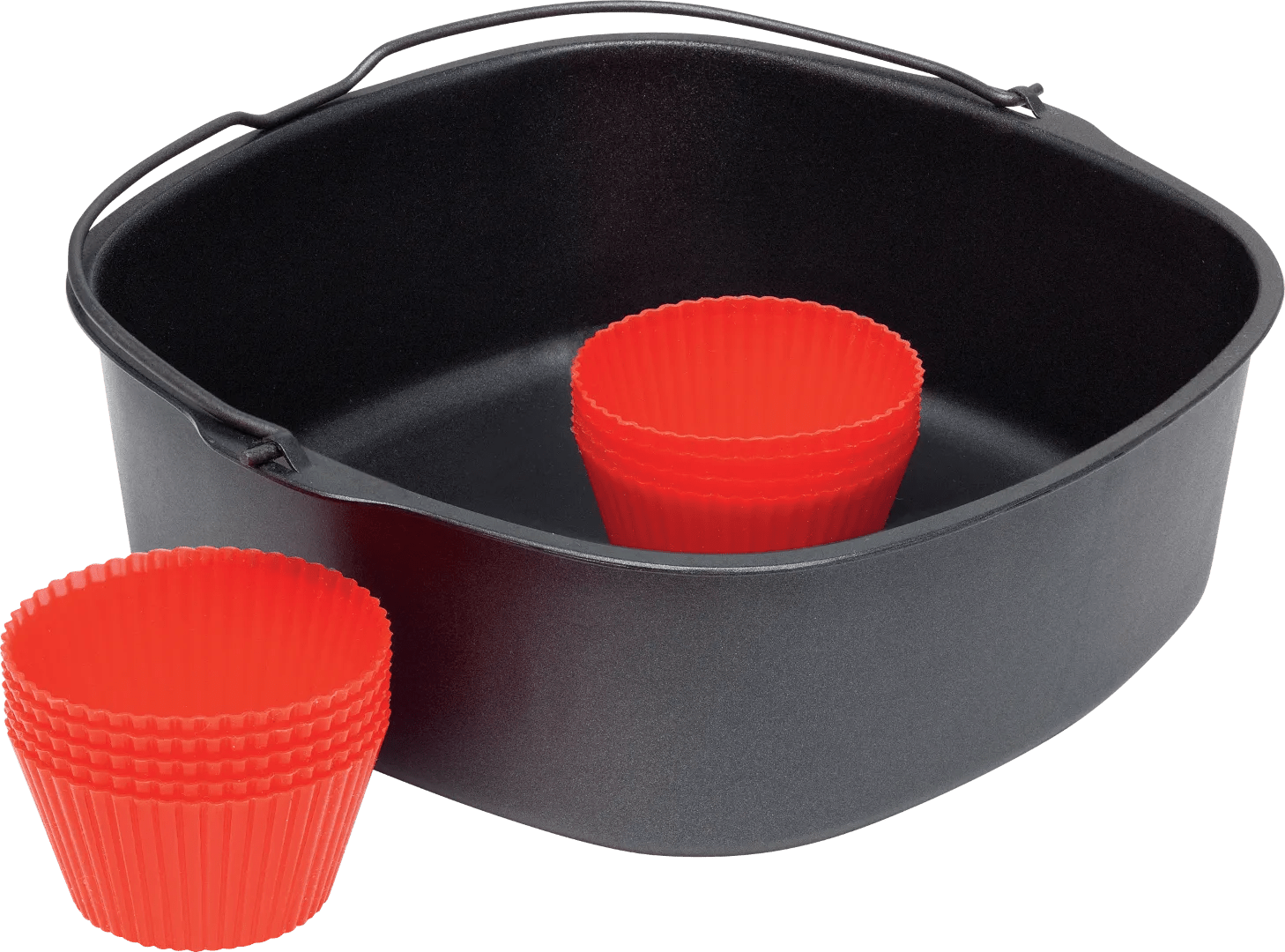 Met de Philips Airfryer XXL Bakset HD9956/00 haal je een ovenschaal voor je Philips airfryer XXL in huis waarmee je gezinsporties bakt. Deze bakvorm heeft namelijk een ruime inhoud van 2,8 liter. Zo maak je gemakkelijk een taart, brood of pasta voor het hele gezin in de airfryer. Je krijgt er ook 9 muffinvormen bij, zodat je zelf verse muffins bakt. Na gebruik reinig je de bakvorm in vaatwasser. Geschikt voor: alle Philips airfryers XXL.