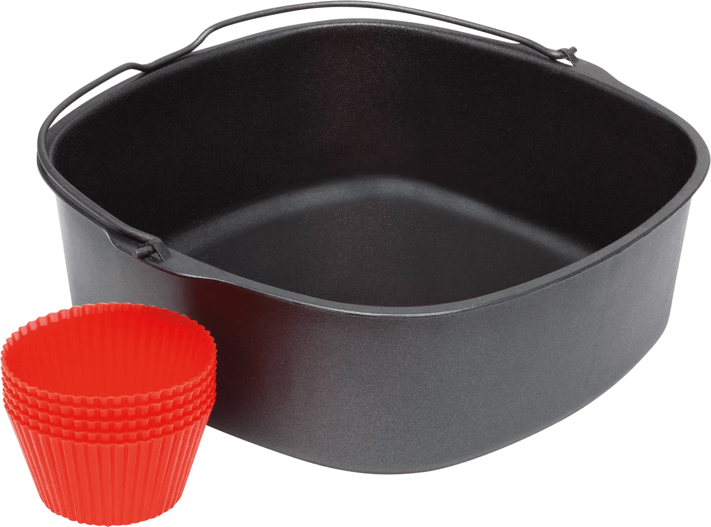 Met de Philips Bakmeesterset Airfryer L HD9925/01 haal je een bakvorm voor jouw Philips airfryer L in huis. Hiermee maak je bijvoorbeeld brood, taart of quiche in je airfryer. Je krijgt er ook 7 siliconen muffinvormpjes bij voor het maken van muffins. De accessoires maak je na gebruik schoon in de vaatwasser. Geschikt voor: Philips Airfryer L. Modelnummer begint met HD92 of HD925.