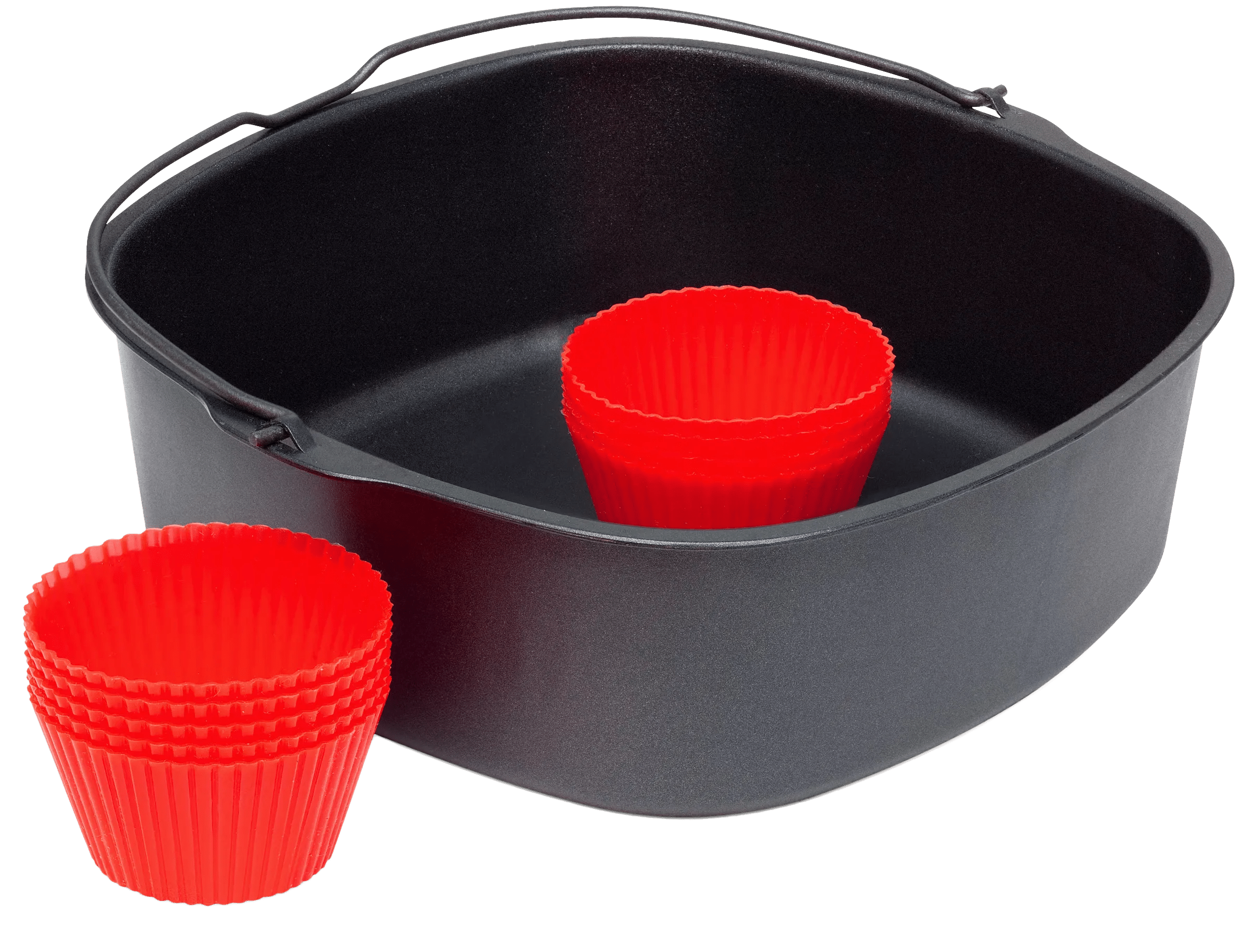 Met Philips bakmeesterset Airfryer XL HD9945/01 haal je een accessoireset in huis waarmee je jouw Philips XL airfryer als oven gebruikt. Daarmee bak je dus gemakkelijk broodjes, muffins, quiches en andere deeggerechten. Je ontvangt 9 siliconen muffinvormen en een niet klevende bakvorm die perfect in jouw luchtfriteusse past. In de bakvorm bereid je zelfs risotto. Ook de beginnende bakker heeft er veel plezier van. Je krijgt er namelijk een boekje bij om je bakvaardigheid te verbeteren. Ben je klaar, dan was je de onderdelen gemakkelijk in de vaatwasser af.