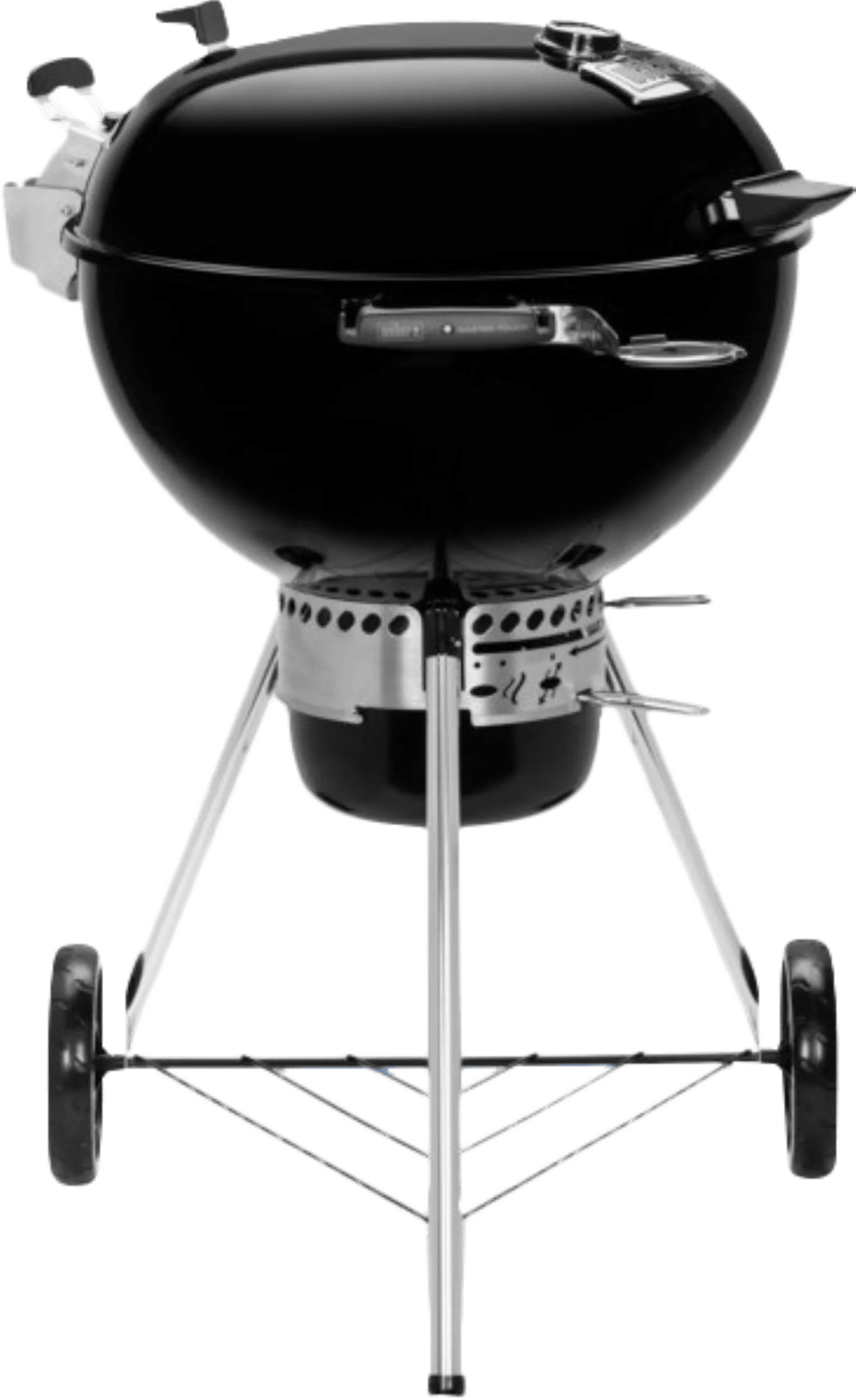 Gril direct en indirect met de Weber Master-Touch Premium E-5770 Zwart. De houtskool barbecue heeft een rond grilloppervlak met een doorsnede van 57 centimeter. Je maakt zo grote gerechten of meerdere kleine gerechten tegelijk. Het rooster is onderdeel van het Weber Gourmet BBQ System. Je verwijdert daardoor een deel van het rooster, zodat je de barbecue uitbreidt met accessoires. Denk aan een barbecuepan. Je krijgt deze accessoires er niet bij. Na gebruik valt de as met één druk op de knop in de asopvangschaal. Zo maak je de barbecue snel en gemakkelijk schoon. Met de wielen verplaats je de barbecue door je tuin.