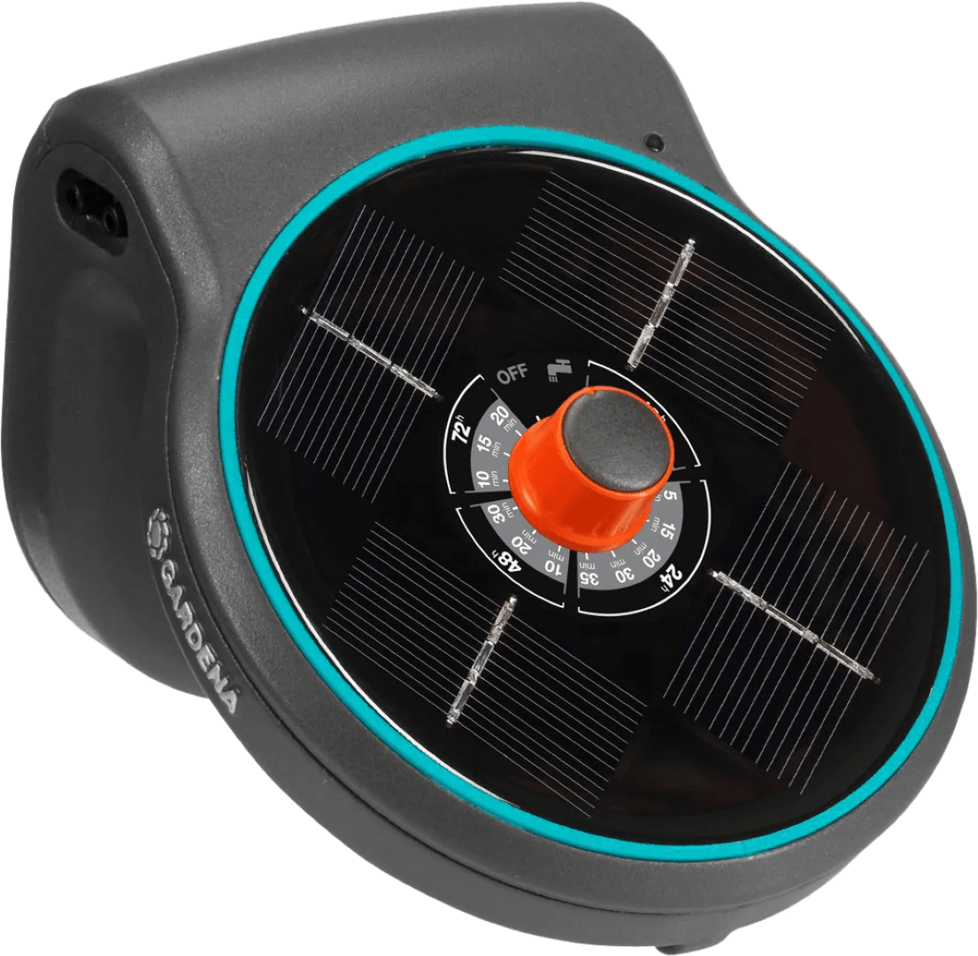 Met de Gardena Vakantiebewateringsset AquaBloom krijgen jouw balkon- en potplanten automatisch water, zelfs als je er niet bent. Dit slimme irrigatiesysteem werkt zonder waterkraan of stroomaansluiting. Het zonnepaneel laadt de oplaadbare batterijen op. De 3-in-1 hoofdunit zuigt water aan, regelt het bewateringsschema en verdeelt het water via drukcompenserende druppelaars. Met 14 vooraf ingestelde programma¿s verzorg je tot 20 planten, waarbij elke druppelaar maximaal 300 milliliter water geeft. Je plaatst de AquaBloom waar je wilt, bijvoorbeeld aan een muur, op een tafel of aan een bloempot. Door de gemakkelijke installatie zonder gereedschap en het gevuld waterreservoir, blijft je systeem altijd klaar voor gebruik. Zo geniet je van gezonde planten, zelfs als je op vakantie bent.