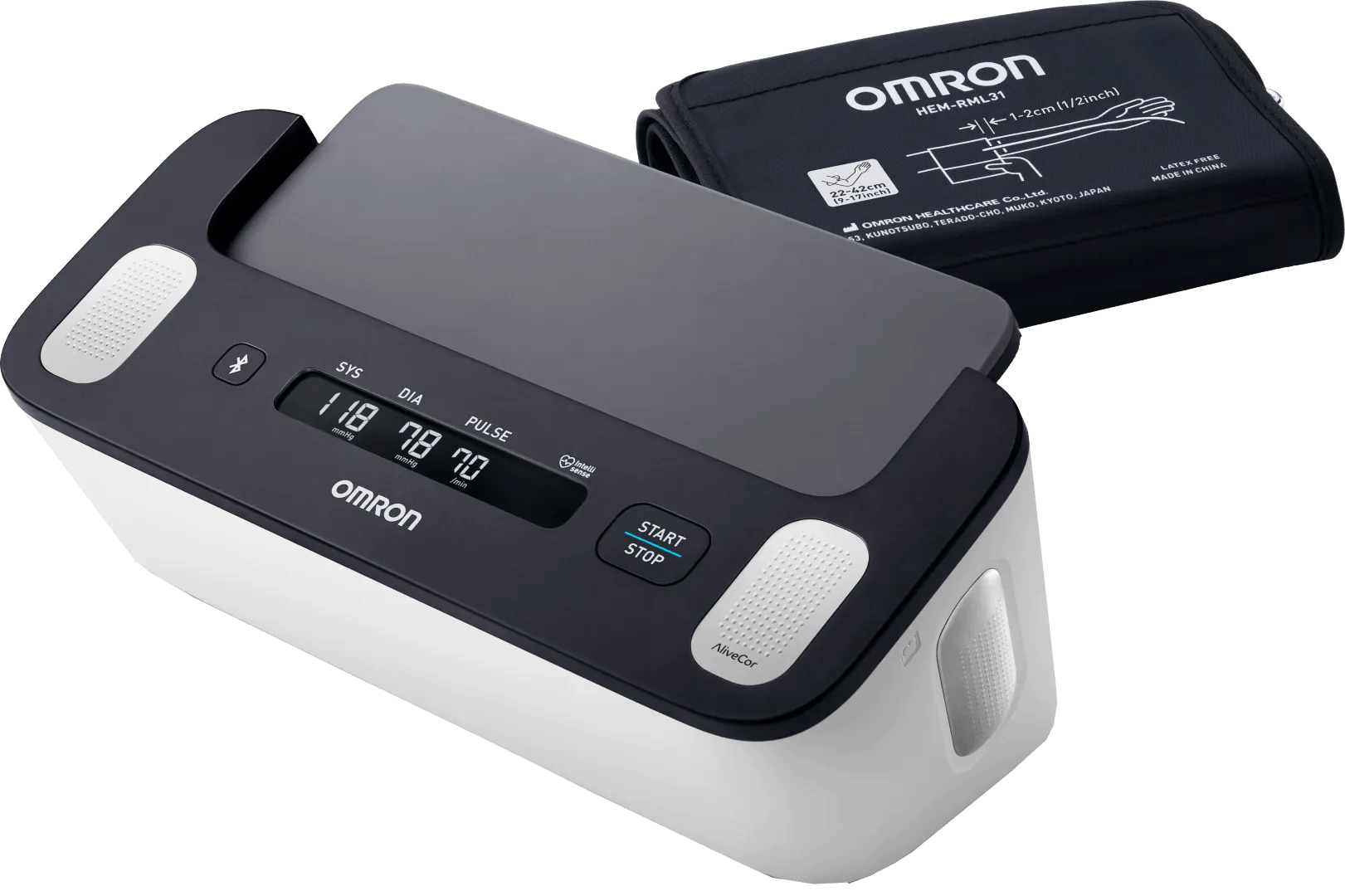 De Omron Complete + ECG Recorder is een bloeddrukmeter en elektrocardiogram in één. Bevestig de ruime manchet om je bovenarm en plaats je smartphone in de speciale houder. Zorg ervoor dat je jouw smartphone via bluetooth met de Omron Connect app verbindt om je resultaten te zien. Voor een uitgebreide hartslagmeting plaats je je duimen op de ECG meters. Via de app zie je direct je hartslag en krijg je binnen 30 seconden te zien of er een mogelijke hartritmestoornis is gedetecteerd. De Omron Complete + ECG Recorder slaat in totaal 90 metingen op om achteraf terug te kijken.
