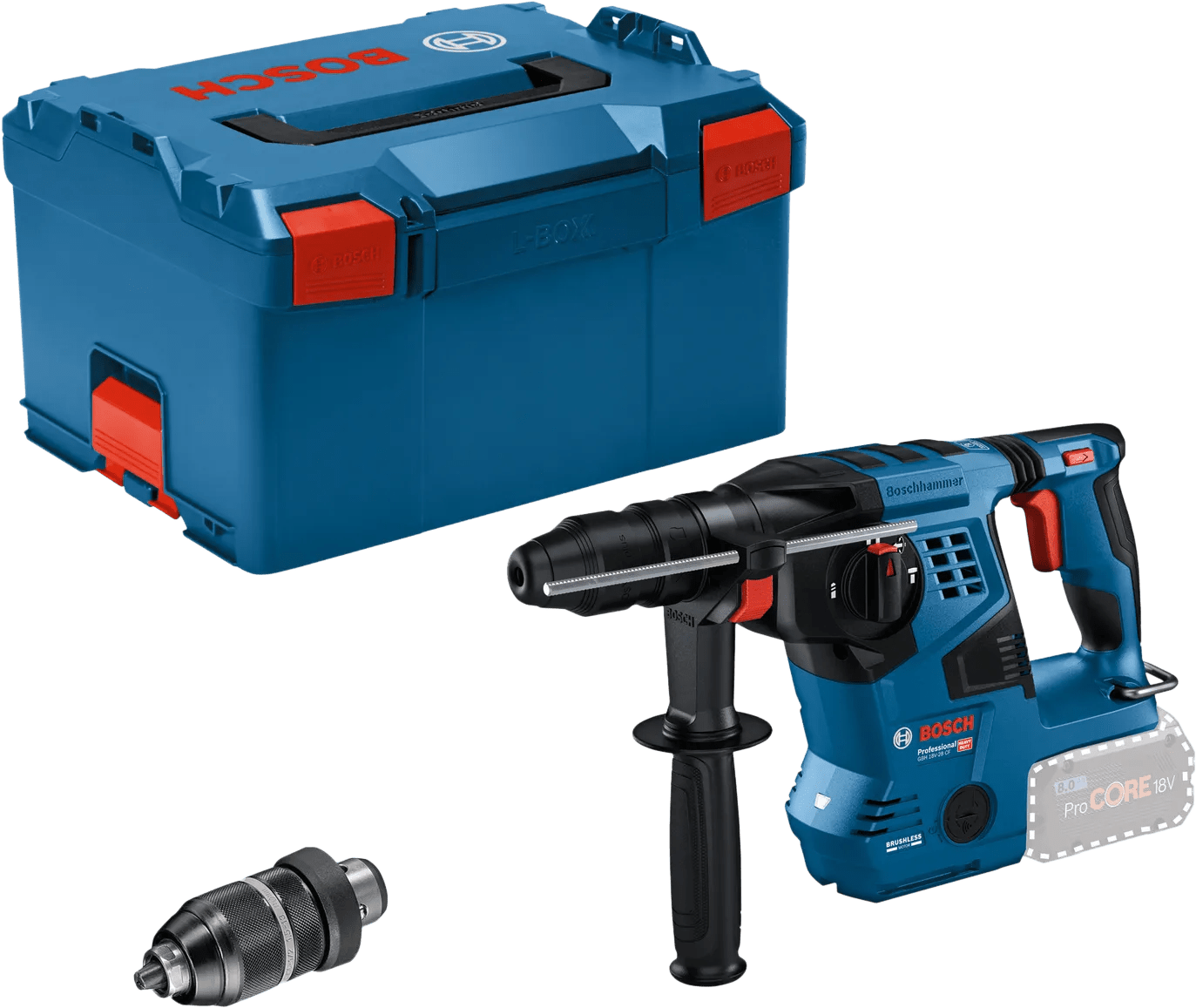 Boor gaten in beton en breek muurtjes af met de Bosch GBH 18V-28 CF Professional combihamer. De borstelloze motor levert 3,3 Joule slagenergie voor krachtig boren zonder snoer. Kies uit 3 standen (Auto, Favorite, Soft) voor de beste controle. De gereedschapsloze snelwisselboorhouder maakt snel wisselen van accessoires mogelijk. Door de bluetooth-verbinding gebruik je jouw combihamer met de Toolbox app. De combihamer heeft Vibration Control en KickBack Control voor extra veiligheid. Ook werk je stofvrij met de GDE 18V-16 stofafzuiger (niet meegeleverd). In de L-BOXX neem je jouw boormachine veilig mee. De combihamer is onderdeel van het Bosch Professional 18V Systeem accu platform. Heb je al een accu van dit platform in huis? Dan gebruik je die ook op deze machine.