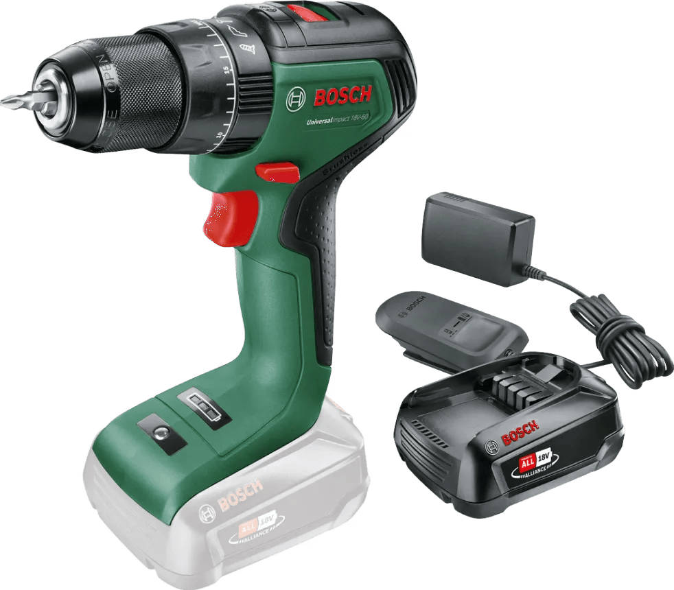 Ga direct aan de slag op plekken zonder een stopcontact met de Bosch UniversalImpact 18V-60 + POWER FOR ALL 18V 2,5 Ah Accu Set. De klopboormachine heeft een maximaal koppel van 60 Newtonmeter. Hierdoor draai je probleemloos verroeste schroeven los en vast. Ook maak je gaten van 13 millimeter groot in (bak)steen, waardoor je de meeste klussen rondom het huis aanpakt. Je werkt zonder problemen op donkere plekken met het ingebouwde licht. De boormachine en de meegeleverde 2,5 Ah accu horen bij het Bosch Power For All 18V accu platform. Je gebruikt de accu daardoor ook op ander (tuin)gereedschap van dit platform.