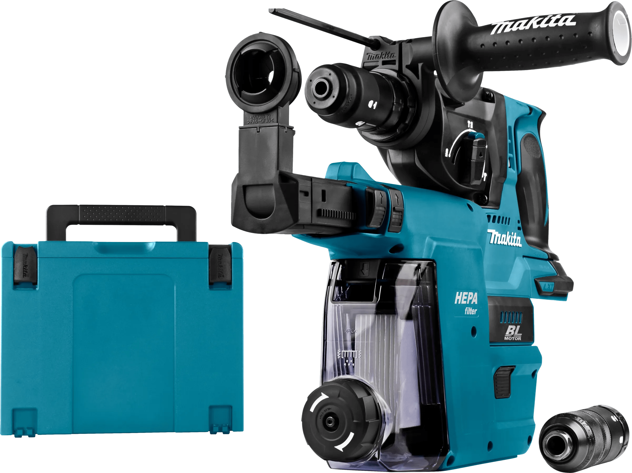 Met de Makita DHR243ZJW boor je niet alleen door zware materialen, maar voer je dankzij de rotatiestop ook lichte breekwerkzaamheden uit. Met een gewicht van 3,4 kilogram werk je langere tijd door, zonder last te krijgen van je armen. Dit maakt deze combihamer geschikt voor professionele klussers .Dankzij de geïntegreerde stofafzuiging zuigt de machine boorgruis- en stof meteen bij het boorgat op. Hierdoor heb je geen berg stof op de grond liggen na het klussen. De DHR243ZJW is onderdeel van het Makita LXT 18V accuplatform. Heb je thuis al een accu van dit platform liggen? Dan gebruik je die ook voor dit apparaat en hoef je dus geen nieuwe te kopen.
