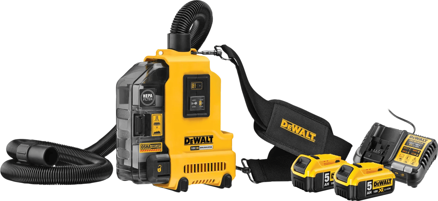 Werk zonder onderbrekingen met het DeWalt DWH161N-XJ 5,0 Ah Accu (2x) Starterspakket. Je krijgt 2 accu's van 5,0 Ah en een lader. De bouwstofzuiger is klein en neem je gemakkelijk mee. Door het gewicht van 2,3 kilogram en de draagriem til je hem comfortabel. Ligt er vuil op een moeilijk bereikbare plek? Met de handige blaasfunctie blaas je dit aan de kant, zodat je het daarna gemakkelijk opzuigt. Gereedschappen sluit je aan op het ingebouwde stopcontact. Dat is handig, want zo zuig je stof direct op tijdens je klus. De bouwstofzuiger hoort bij het DeWalt XR 18V accu platform. Je gebruikt de accu's daardoor ook op ander (tuin)gereedschap van dit platform.