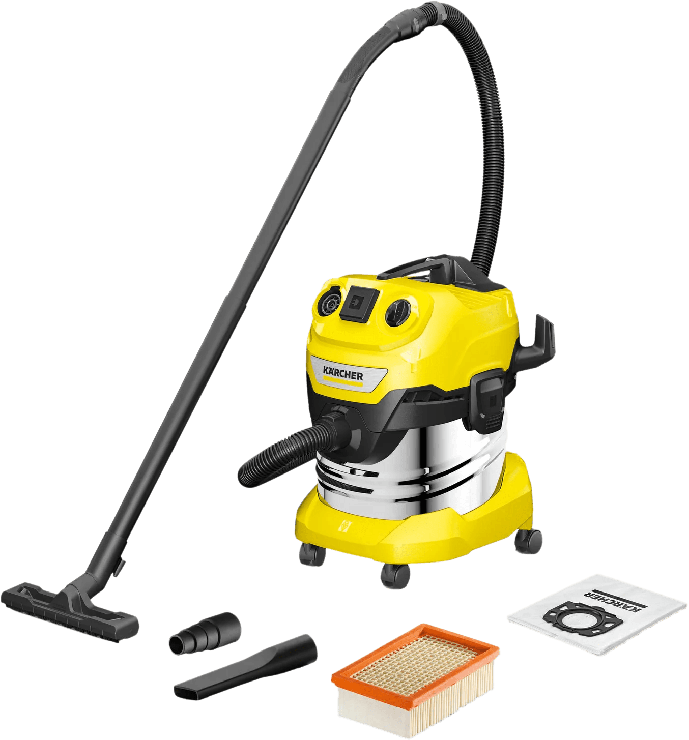 Zuig nat en droog vuil in en rondom je huis op met de Karcher WD 4 P S V-20/5/22. Door de inhoud van 20 liter is de ketel niet snel vol en werk je lang door. Je gebruikt de bouwstofzuiger met of zonder zak, zodat je zelf kiest wat bij jouw klus past. Door het stopcontact sluit je ook gereedschap aan op de bouwstofzuiger. Dat is handig, want zo zuig je stof direct op tijdens je klus. Ligt er vuil op een moeilijk bereikbare plek? Met de blaasfunctie blaas je dit gemakkelijk weg. De stofzuigslang hang je op aan het apparaat. Zo bespaar je ruimte als je de bouwstofzuiger opbergt. De trommel van rvs gaat lang mee.