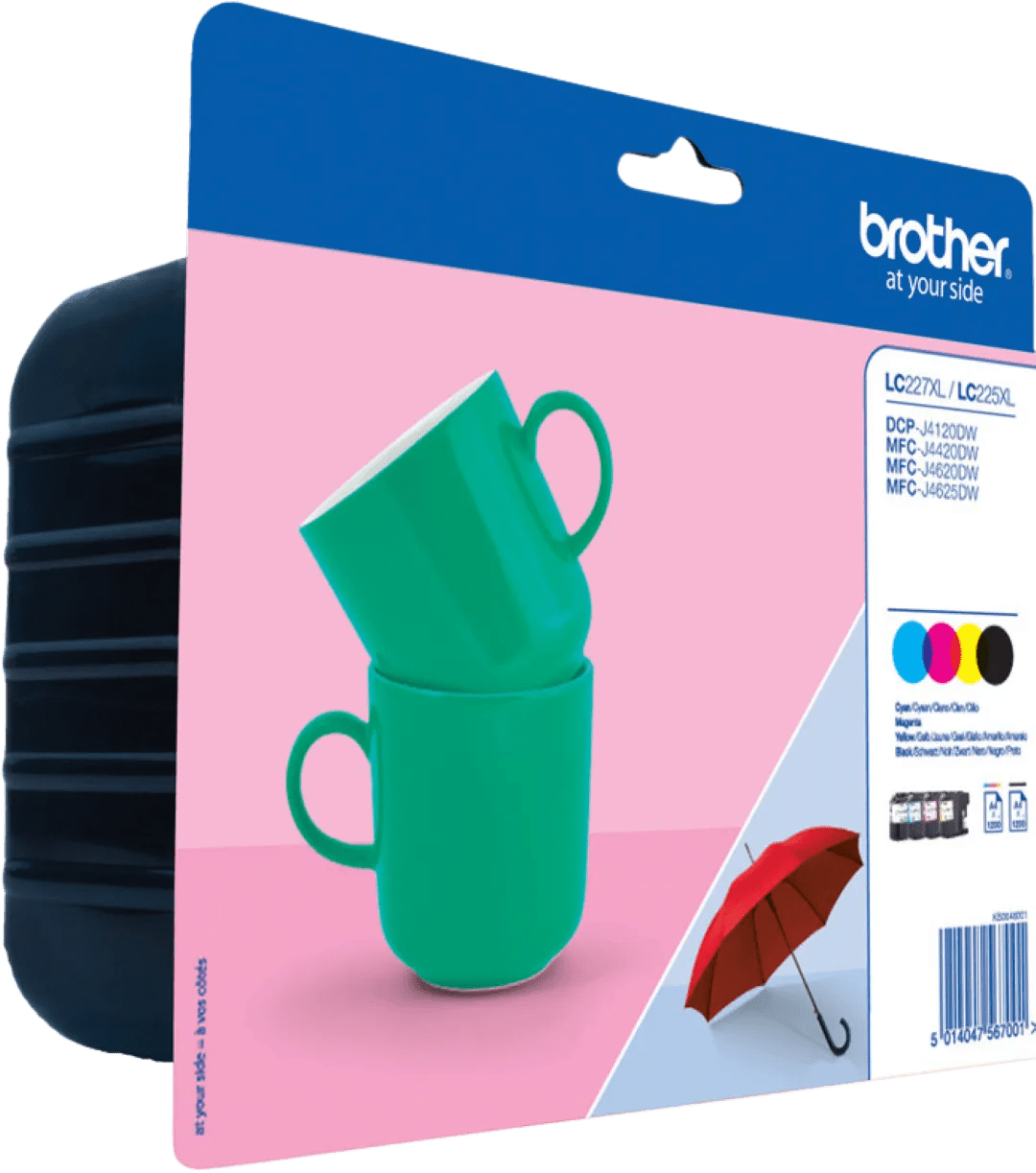 Druk teksten in goede kwaliteit af en print kleurenfoto’s helder en levendig met de Brother LC-227XL/LC225XL Cartridges Combo Pack. Met deze cartridges print je tot wel 1.200 pagina’s in kleur en 1.200 pagina’s in zwart-wit. Na gebruik retourneer je gratis de lege cartridges bij Brother. Deze worden opnieuw gebruikt of gerecycled. Zo ben je milieuvriendelijk bezig. Bekijk hieronder voor welke printers dit inktpatroon geschikt is: