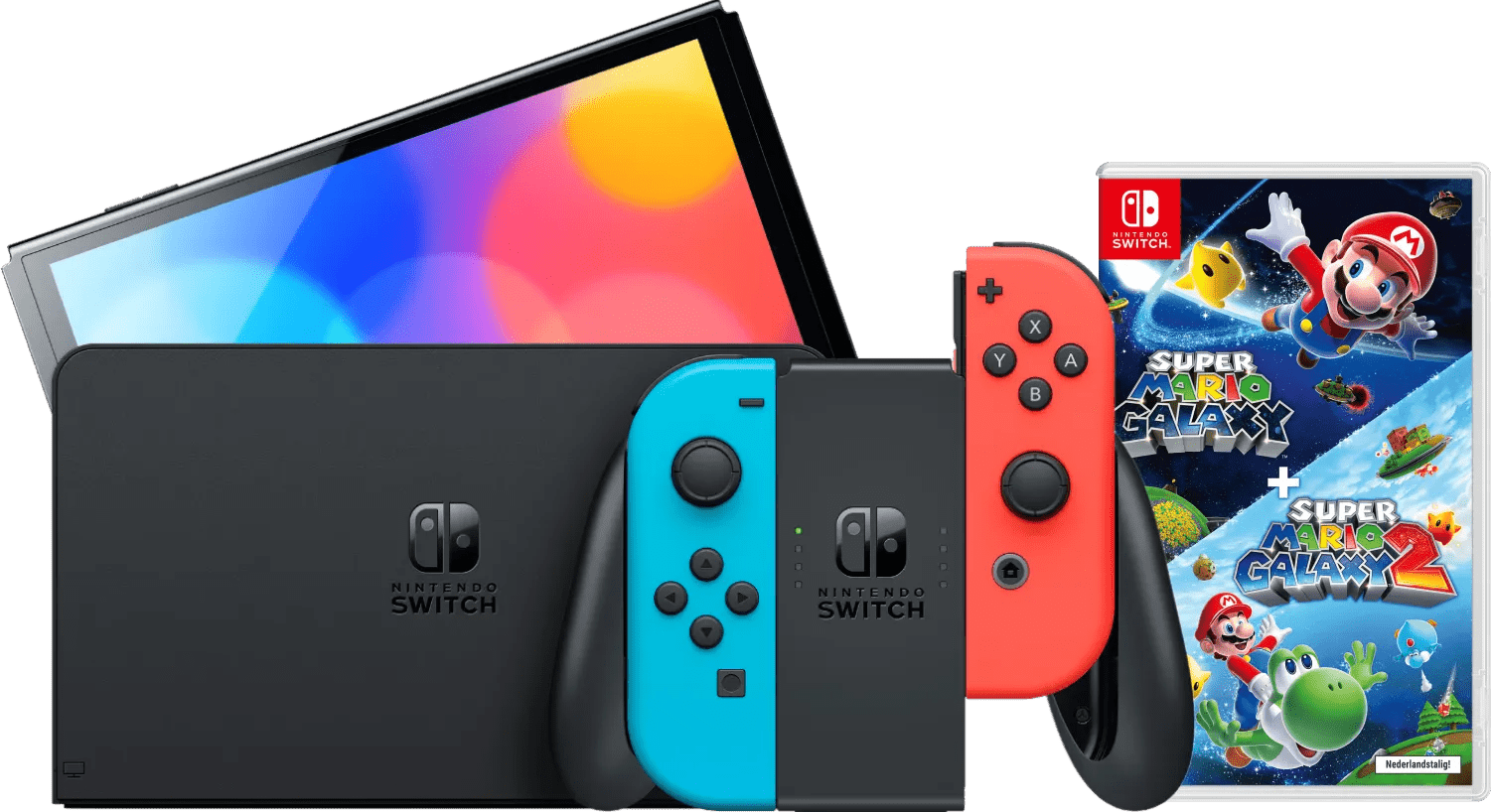 Nintendo Switch OLED Blauw/Rood + Super Mario Galaxy 1+2