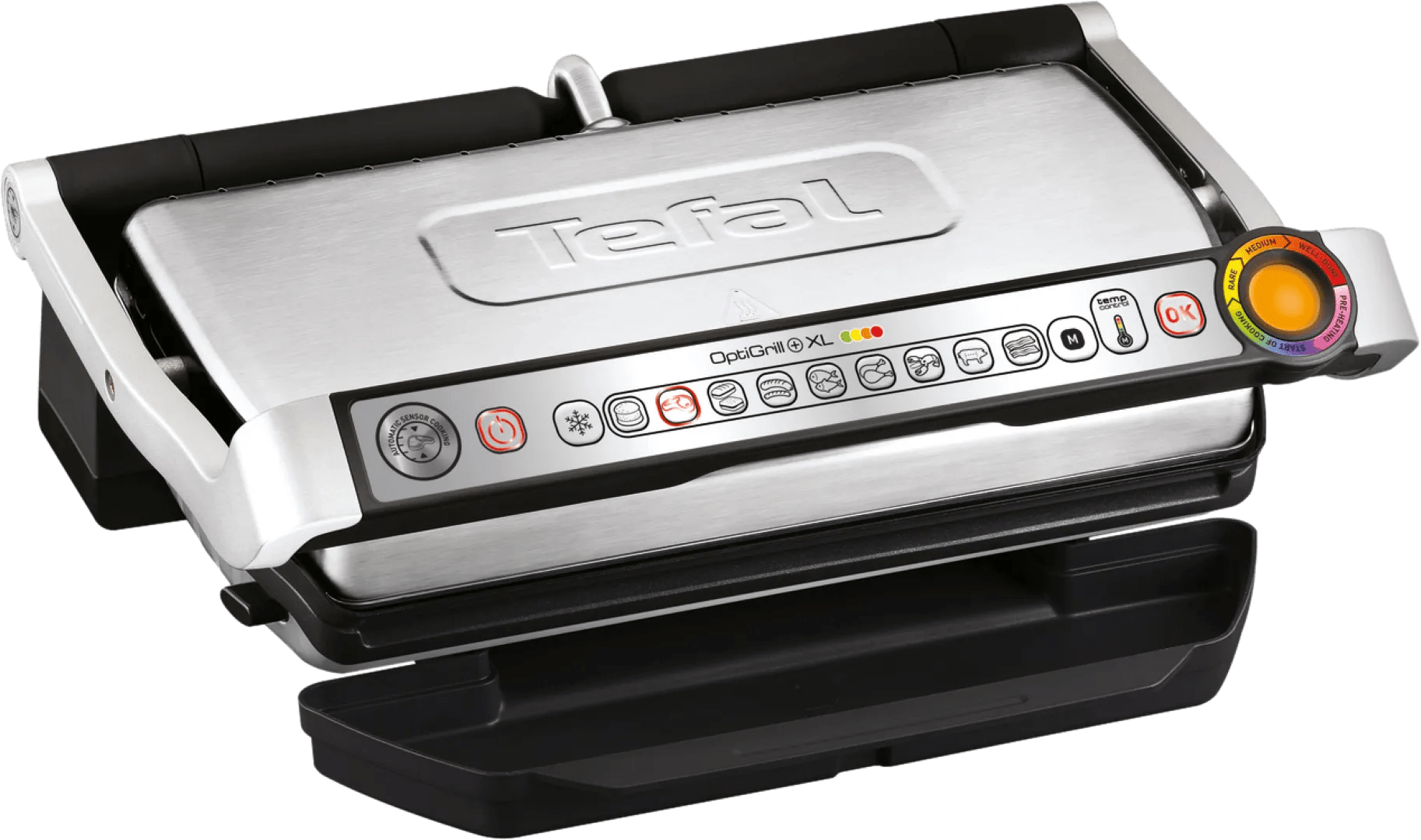Met de Tefal OptiGrill XL GC724D + Snacking & Baking accessoire bak je een hartige taart, brood of een pizza, dankzij het meegeleverde bakaccessoire. Deze contactgrill is tot 33 procent groter dan zijn broertje, de OptiGrill+, waardoor je porties voor 6 tot 8 personen bereidt. Je gebruikt altijd de juiste instellingen door de ingebouwde slimme sensor. Deze sensor leest namelijk de dikte en het soort ingrediënt dat je wilt bereiden. Daarna stemt hij de juiste bereidingstijd en -temperatuur af. Je bakt ook groente en aardappeltjes met de 4 handmatige temperatuurinstellingen. Wil je ingrediënten ontdooien in de contactgrill? Dan ga je voor de diepvriesstand. Door de hittebestendige handvatten verplaats je `m veilig naar de eettafel. Na het eten reinig je de uitneembare platen in de vaatwasmachine.