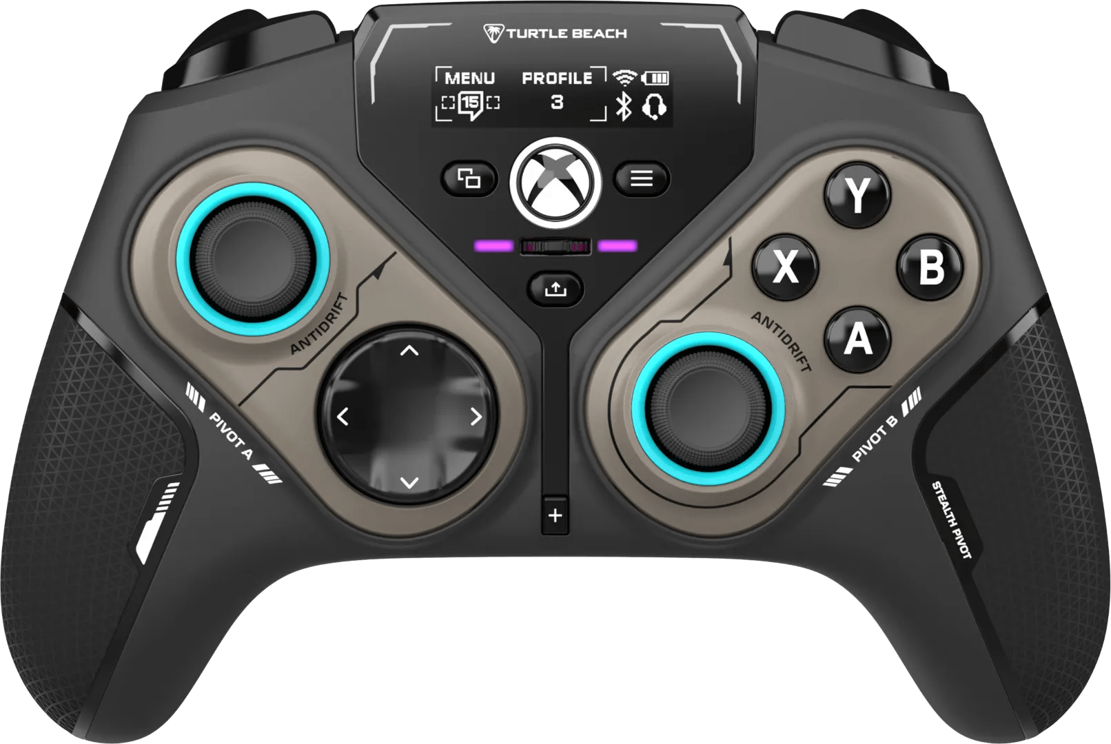 Met de Turtle Beach Stealth Pivot Controller speel je jouw favoriete Xbox en pc games zonder vertragingen. Deze controller is draadloos, waardoor je niet vastzit aan een kabel. Je verbindt de controller met de 2.4Ghz usb A dongel aan je pc. Op de Xbox speel je alleen bedraad. Game je graag op je smartphone? Dan verbind je via bluetooth. Door de 2 draaiende knoppen modules wissel je af tussen een traditioneel ontwerp van een controller en een thumbstick layout. Deze layout heeft extra actieknoppen, waardoor je nog sneller reageert in-game. Via het display op de controller pas je de audio aan, wijzig je knoppen en zie je de batterijduur. Met een volle accu speel je tot 20 uur door. Zit je midden in de actie? Geen zorgen, de rubber grips op de controller zorgen voor extra controle tijdens spannende potjes.