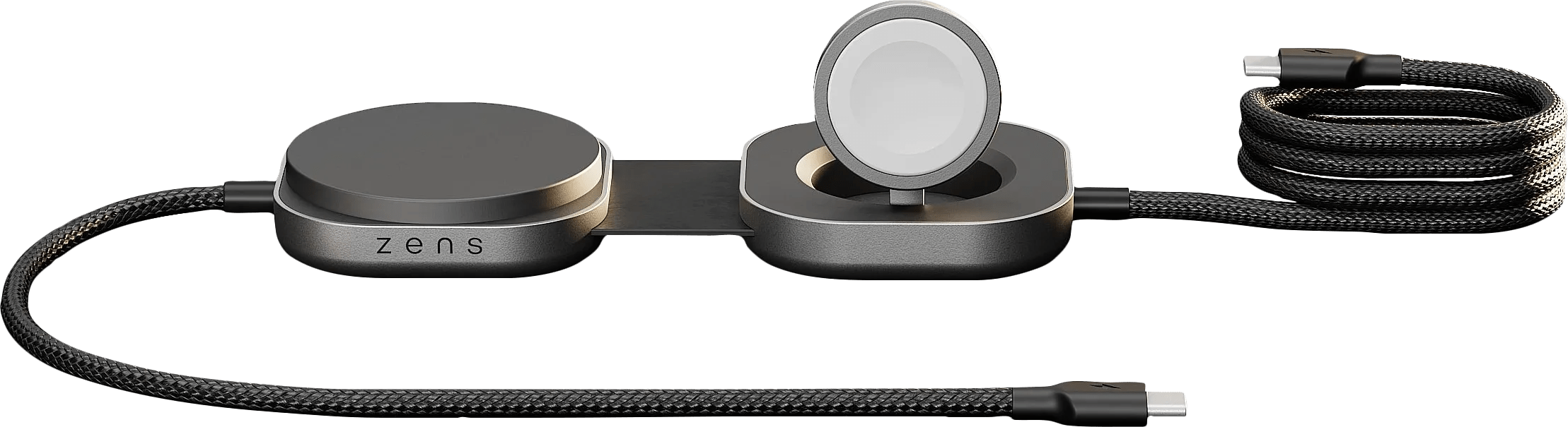 Je laadt je iPhone, Apple Watch en Airpods tegelijkertijd op met de Zens Pro 3 Draadloze Oplader 20 Watt met USB C Kabel Zwart. Met de 2 draadloze opladers die aan de kabel vastzitten laad je bijvoorbeeld je Apple Watch en Airpods tegelijk op. De usb C aansluiting gebruik je om tegelijk je iPhone op te laden. De Usb C kabel zelf ondersteunt tot 140 W snelladen. Let op: je hebt nog een usb C oplader nodig om deze draadloze lader aan te sluiten op het stopcontact. Op deze Zens oplader krijg je 3 jaar garantie.