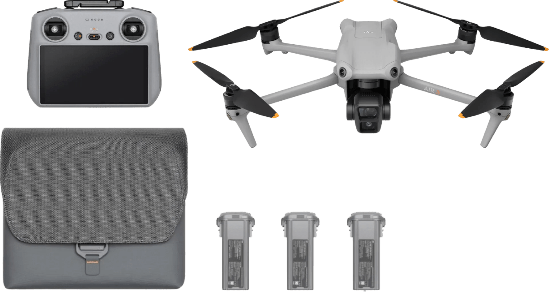 De DJI Air 3 Fly More Combo + Smart Controller is een volledige set voor de drone liefhebber. Je ontvangt een DJI Air 3 drone met Smart Controller, 2 extra accu’s, extra propellers, een oplaadstation en een draagtas. Met de extra accu’s verleng je de vliegduur van je drone met 92 minuten. Je laadt ze op in het oplaadstation. Heb je 3 batterijen die bijna leeg zijn? Via het oplaadstation draag je de resterende accucapaciteit van alle 3 de accu’s over naar 1 accu. Zo stuur je jouw drone toch nog een keer de lucht in. De meegeleverde Smart Controller heeft een ingebouwd beeldscherm. Hierop kijk je live mee met de beelden van je drone. Je bedient hem zonder smartphone.