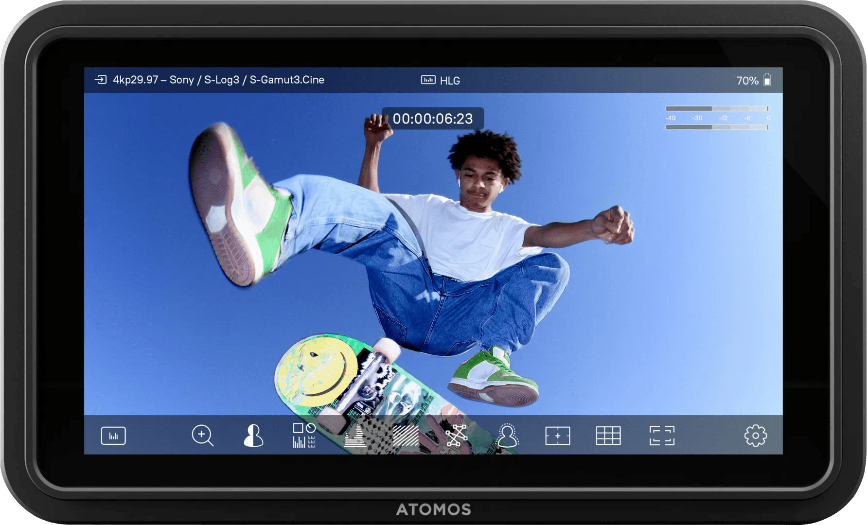 Let op: je hebt een Sony NP-F accu nodig om het product te gebruiken. Deze wordt niet meegeleverd. De Atomos Shinobi GO is een instapmodel externe monitor voor de videograaf. Je plaatst het scherm op de bovenkant van je camera en kijkt live mee met de beelden die je filmt. Dit 5 inch scherm is groter dan het ingebouwde scherm van je camera, waardoor je meer details ziet. Het scherm heeft een hoge helderheid van 1500 nits. Hierdoor bekijk je heldere beelden, zelfs in zonnige omstandigheden. Het beeldscherm speelt de beelden in 4K af. Dat is handig als je in 4K filmt. Je bewaart maximaal 8 LUTs op het scherm. Dit zijn ingebouwde filters waarmee je de kleuren en belichting van je opname verandert. Als je een LUT gebruikt tijdens het filmen, krijg je al een idee van hoe je video eruit gaat zien.