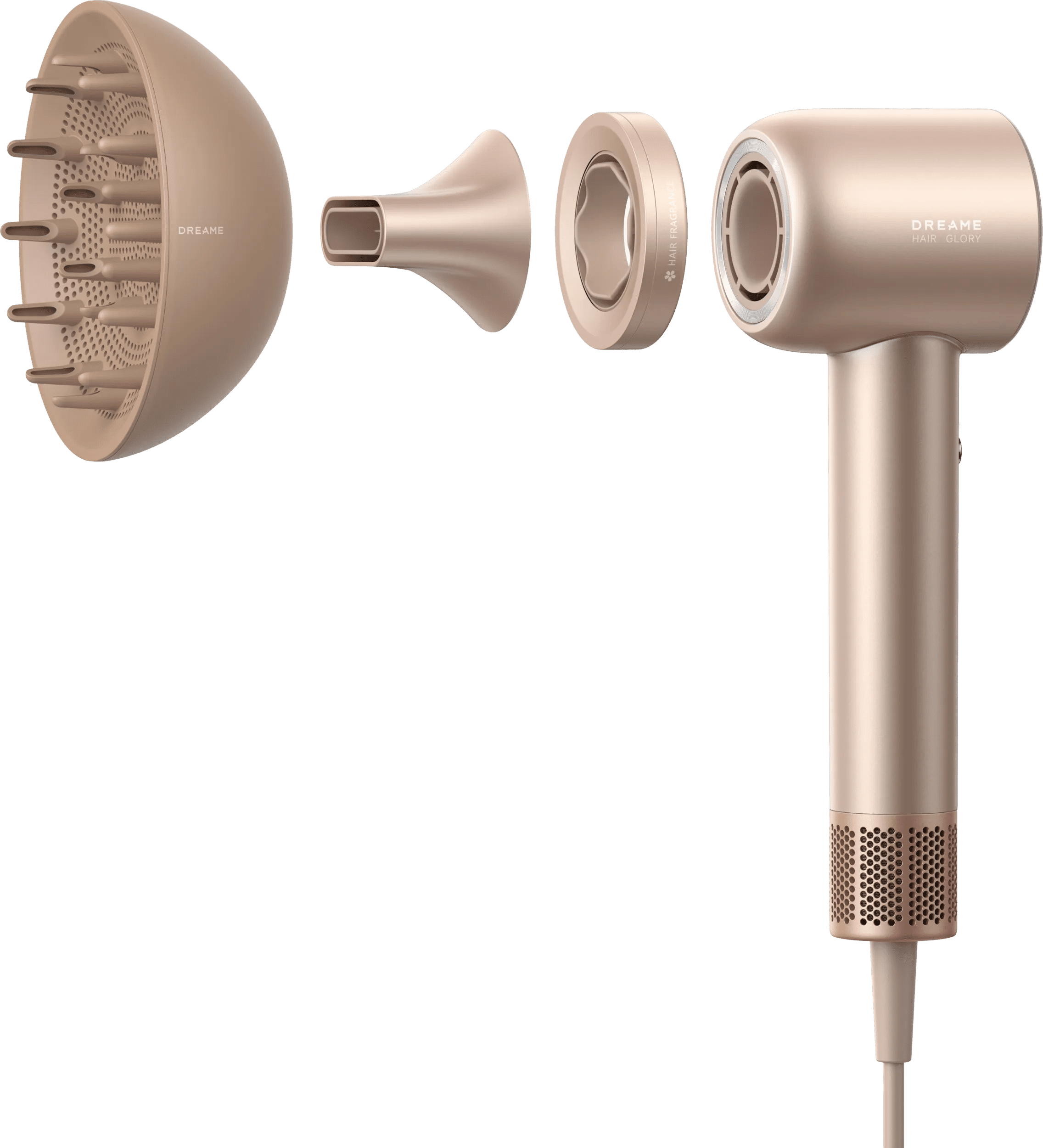 Met de Dreame Glory Mix Gold droog je jouw haar en geef je jouw haar een lekkere geur. Je krijgt namelijk een parfumring bij deze föhn. Hiermee verspreid je een lekkere geur door je haar die tot 8 uur lang aanwezig blijft. Je kiest uit 4 verschillende droogstanden. Zo is er bijvoorbeeld een stand waarmee je beschadiging van je haar voorkomt en een stand voor het snel drogen van nat haar. De temperatuursensor zorgt dat de temperatuur van de luchtstroom op 55 graden Celsius blijft. Zo droog je jouw haar altijd veilig. Bij de föhn krijg je ook een diffuser opzetstuk. Hiermee creëer je meer volume. Dankzij het lichte gewicht van 336 gram droog je gemakkelijk je haar zonder dat je een vermoeide arm krijgt.
