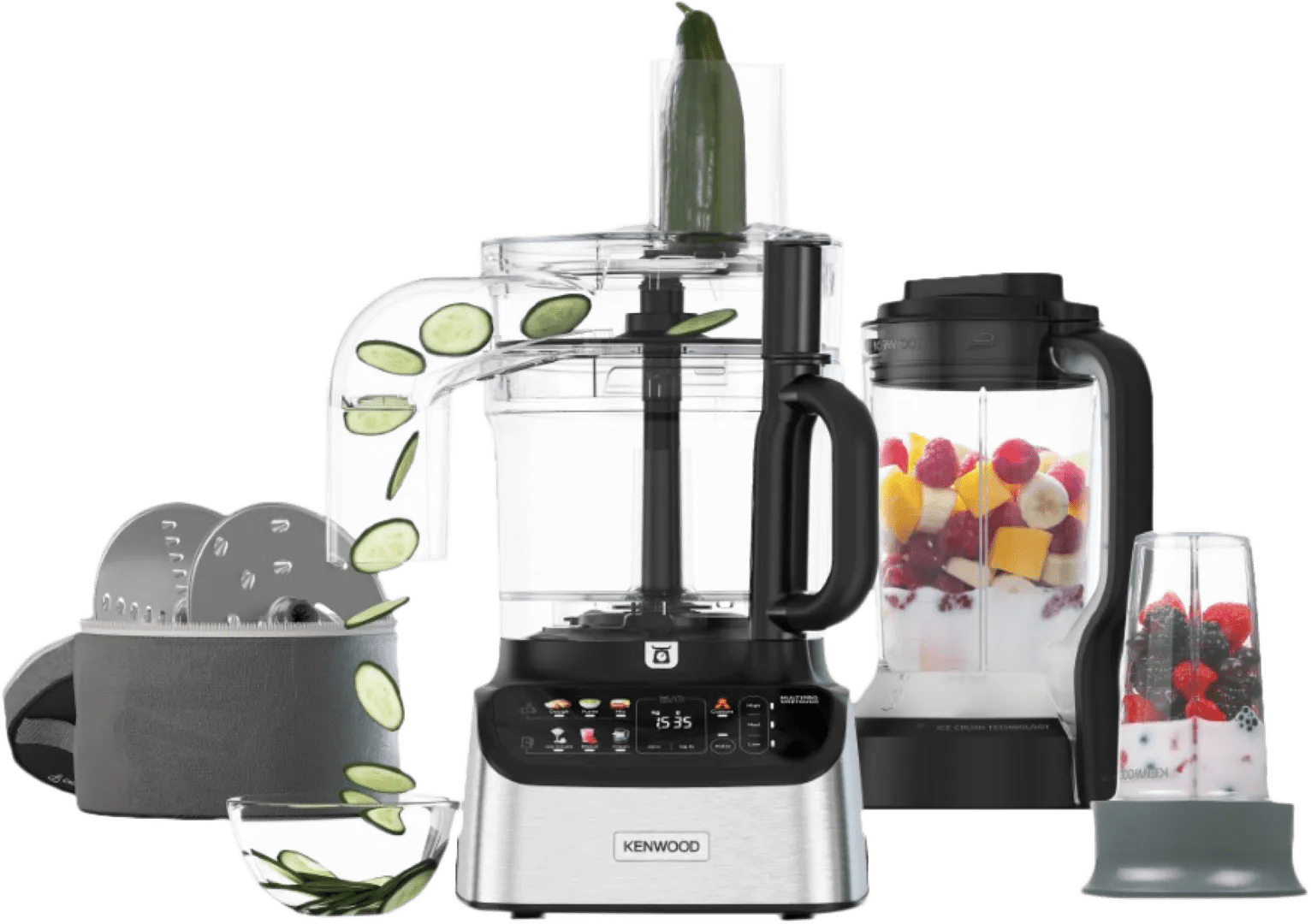 Met de Kenwood FDM73.850SS haal je een multifunctionele foodprocessor met verschillende opzetstukken in huis, zodat je verschillende bereidingen maakt. Naast dat je ingrediënten hakt en snijdt, gebruik je de foodprocessor ook als blender, citruspers of keukenweegschaal. De foodprocessor heeft een metalen behuizing. Hierdoor is hij stevig en gaat hij langer mee. Je bedient de machine via de voorgeprogrammeerde programma's of 3 snelheidsstanden. Handig, zo gebruik je altijd de juiste instellingen voor je bereiding. Dankzij de krachtige motor van 1.000 watt hak je harde ingrediënten, zoals noten of ijsblokjes, snel fijn. De losse opzetstukken reinig je na gebruik in de vaatwasser. In de SmartStore opbergtas berg je alle accessoires netjes op.