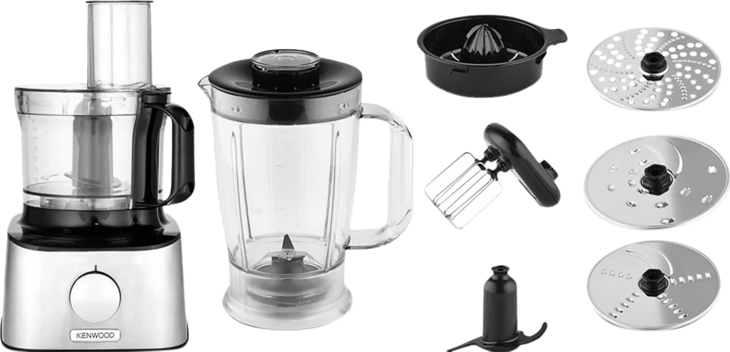 Chef in spe met kleine keukens opgelet: met deze veelzijdige en compacte Kenwood Multipro Compact FDM301SS foodprocessor heb je niet veel ruimte nodig. Gebruik het citruspers opzetstuk om de dag te beginnen met een versgeperst glas sinaasappelsap. Liever een groene smoothie? Gebruik dan het blender opzetstuk van 1,2 liter. In de mengkom van 2,1 liter kneed je taartbodems, mix je cakebeslag of klop je eiwitten stijf voor zelfgemaakte merengue. Ook voor het hakken van groenten of het snijden van plakjes fruit is deze alleskunner meer dan geschikt. En ga je worteltjes raspen, dan draai je de snijschijf gewoon om. Met 800 watt vermogen is je keukenklus in een mum van tijd geklaard, en als je klaar bent mogen alle losse onderdelen gerust in de vaatwasmachine.