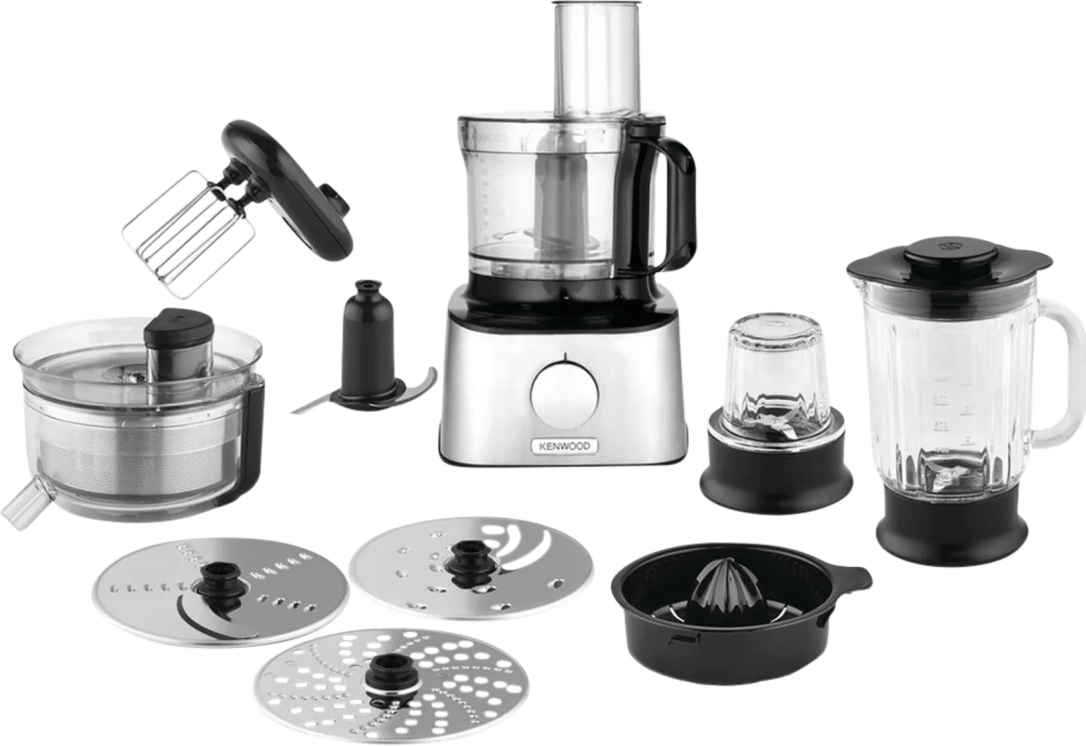Met de Kenwood MultiPro Compact FDM307SS foodprocessor hak, snijd en rasp je niet alleen al je favoriete groenten en fruit, maar maak je ook verschillende soorten sap. Met de citruspers pers sinaasappelsap, met de sapcentrifuge dun sap zonder vruchtvlees en in de blender tot wel 1,2 liter smoothie. In het hakmolen opzetstuk vermaal je basilicum en Parmezaan tot pesto of pinda's tot pindakaas. Voor al je klop-, kneed- en mixwerk gebruik je de mengkom van 1,2 liter. Uitgekookt? Zet alle accessoires dan gerust in de vaatwasmachine.