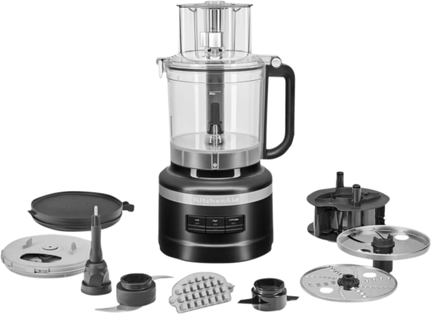 Hak, snijd en kneed grote hoeveelheden in de KitchenAid 5KFP1319EBM Matzwart. De grote mengkom van 3,1 liter is geschikt voor bereidingen voor 3 personen. Dankzij de krachtige motor van 400 watt en duurzame messen is deze foodprocessor geschikt voor verschillende soorten ingrediënten. De foodprocessor is traploos instelbaar, zo pas je zelf de gewenste snelheid aan. Handig, wanneer je het laatste beetje een gladde textuur wilt geven. Met het multifunctioneel mes pureer je ook harde ingrediënten zoals noten in de foodprocessor. Het deegmes gebruik je voor het snel kneden van gistdeeg. Tover je zachte groenten of aardappelen om tot perfect gesneden blokjes met de meegeleverde snijkit. De deksel zet je op de mengkom zodat je overtollige ingrediënten bewaart in de koelkast. Na het bereiden berg je de accessoires netjes op in de opbergvak. Fijn, zo bespaar je ruimte in je keukenlades.