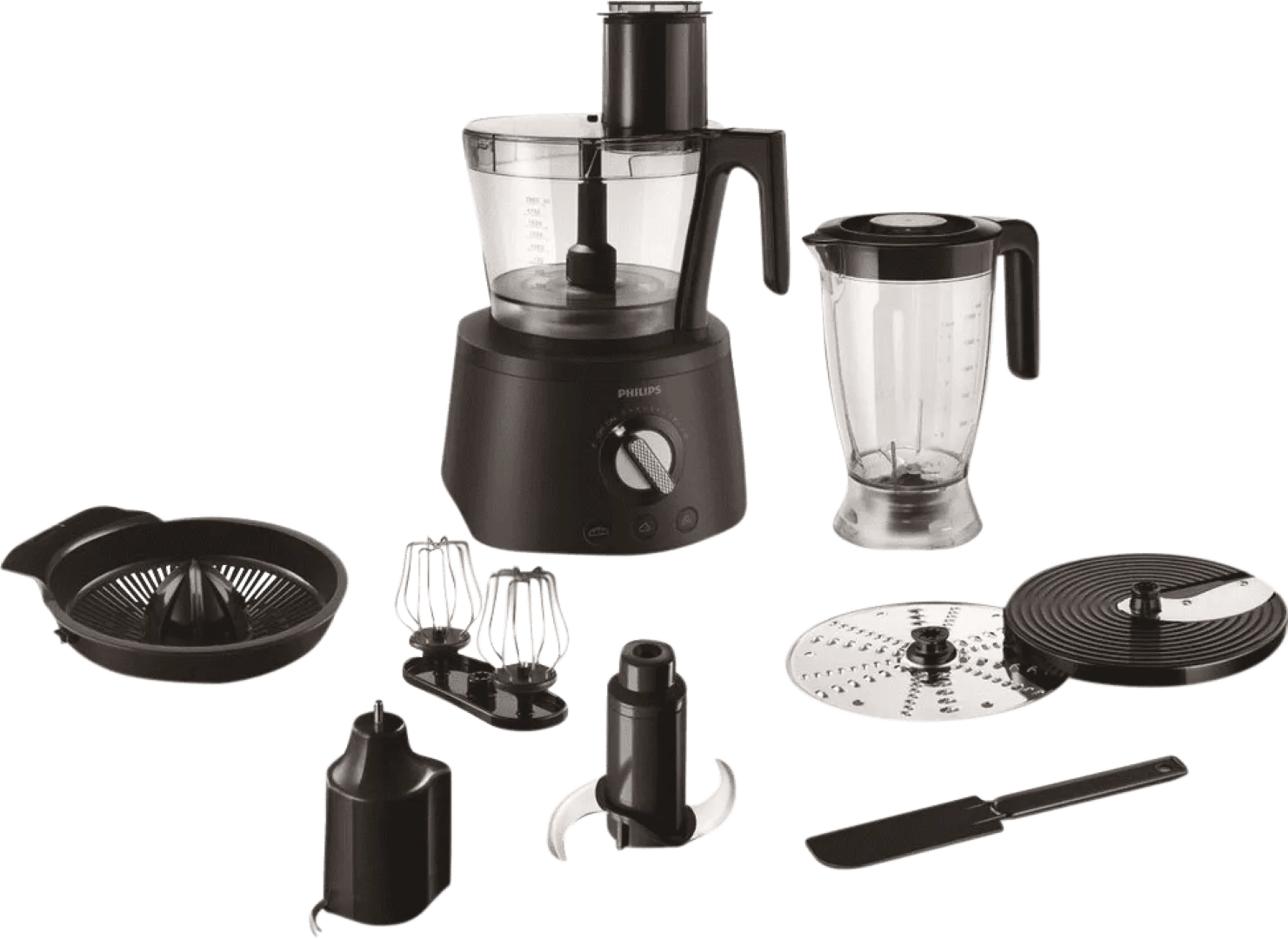 Je haalt met de Philips HR777690 een veelzijdige foodprocessor in huis. De keukenmachine heeft namelijk verschillende accessoires, zodat je verschillende bereidingen maakt. Je stelt met de draaiknop één van de 12 snelheidsstanden of de pulsestand in. Wil je ijs crushen, brooddeeg kneden of slagroom kloppen? Dan gebruik je de automatische programma’s. Handig, zo denk je niet meer na over de juiste snelheid. Je krijgt altijd het beste hak- en snijresultaat, dankzij de PowerChop technologie. Deze technologie combineert namelijk een speciale snijhoek met scherpe roestvrijstalen messen. De losse onderdelen reinig je na gebruik in de vaatwasmachine.