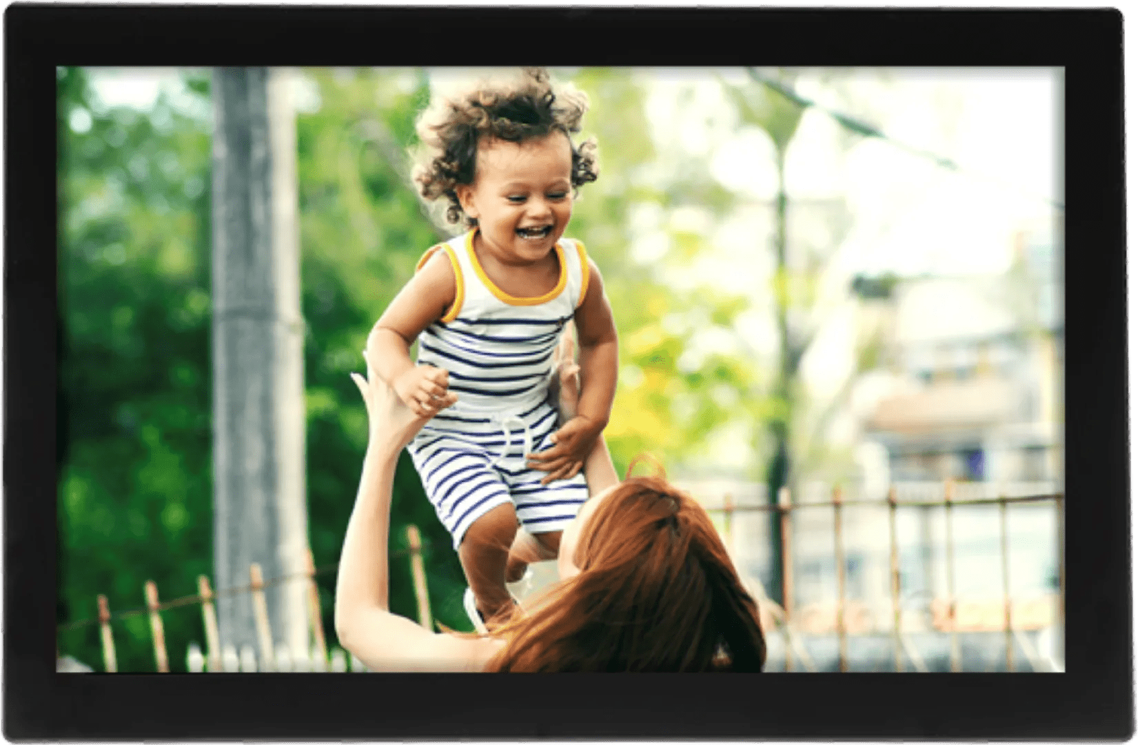 Maak met je eigen foto’s een slideshow met de Denver Frameo PFF-1037 Zwart digitale fotolijst. Op het 10,1 inch beeldscherm met een resolutie van 1280×800 pixels laat je eenvoudig je favoriete foto’s zien. Je zet op 2 manieren foto’s op de fotolijst: met een micro SD kaart of via de Frameo app. Als je de app gebruikt, dan selecteer je foto’s op je telefoon of tablet en stuur je deze door naar de digitale fotolijst. Met de app plaats je tekst bij de foto’s en stel je een timer in, zodat je de hele dag foto’s ziet. De fotolijst zet je horizontaal of verticaal neer en de foto’s passen zich hier vervolgens op aan. Het interne geheugen van de lijst is 16 GB. De digitale fotolijst heeft geen batterij en gebruik je alleen met een voedingskabel.