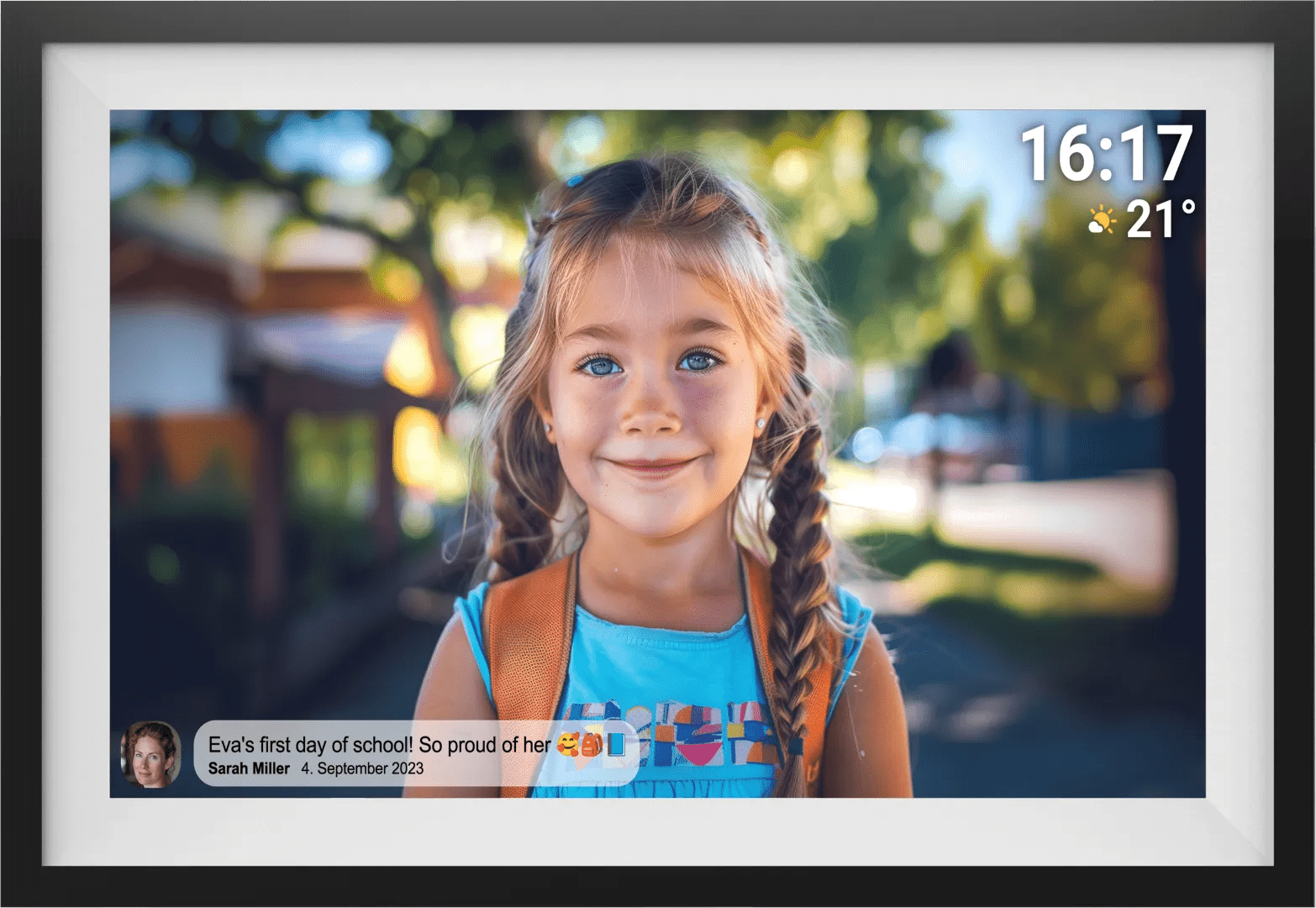 Laat een slideshow van je favoriete foto’s zien met de Denver PFF-1516 Zwart. Deze digitale fotolijst heeft een groot 15,6 inch beeldscherm. Hij speelt de hele dag foto’s en video’s af. Dankzij de ingebouwde timer gaat de lijst automatisch ’s avonds uit en ’s ochtends aan. Hierdoor vergeet je hem niet uit te zetten als je naar bed gaat en verspil je geen stroom. Via de Frameo app sturen jij en je vrienden jullie favoriete foto’s naar de lijst. Je deelt bijvoorbeeld meteen foto’s van een gezellig diner. De tijd tussen de foto’s stel je naar eigen wens in, van 10 seconden tot 30 minuten.