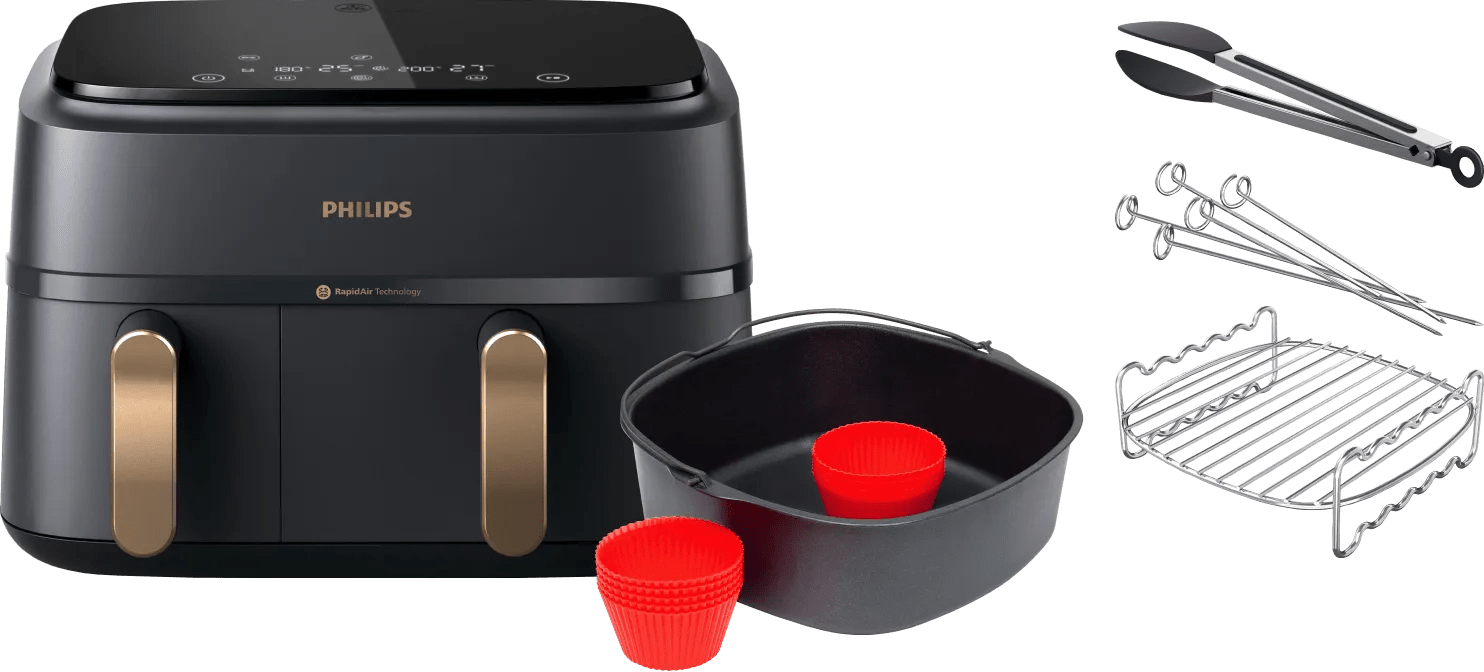 Philips 3000 series Dual Basket NA352/00 + Dubbellaagse kookset + Bakmeesterset