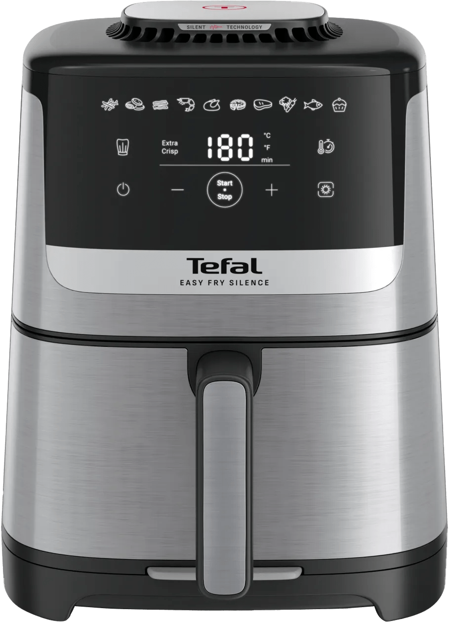 Met de Tefal Easy Fry Silence EY552D bereid je een maaltijd zonder storend geluid, dankzij de Tefal Silent technologie. Hierdoor kijk je bijvoorbeeld televisie tijdens het koken. De 10 automatische bakprogramma’s zorgen ervoor dat je niet nadenkt over de juiste baktemperatuur en -tijd. Met één druk op de knop bereid je op een gezondere manier al je favoriete ingrediënten. Je maakt de losse onderdelen makkelijk schoon in de vaatwasser. Handafwas is dus niet nodig. Je haalt de voorkant met de hendel los van de airfryermand. Zo gebruik je de mand als bewaarbak voor restjes, die je daarna makkelijk in de koelkast zet.