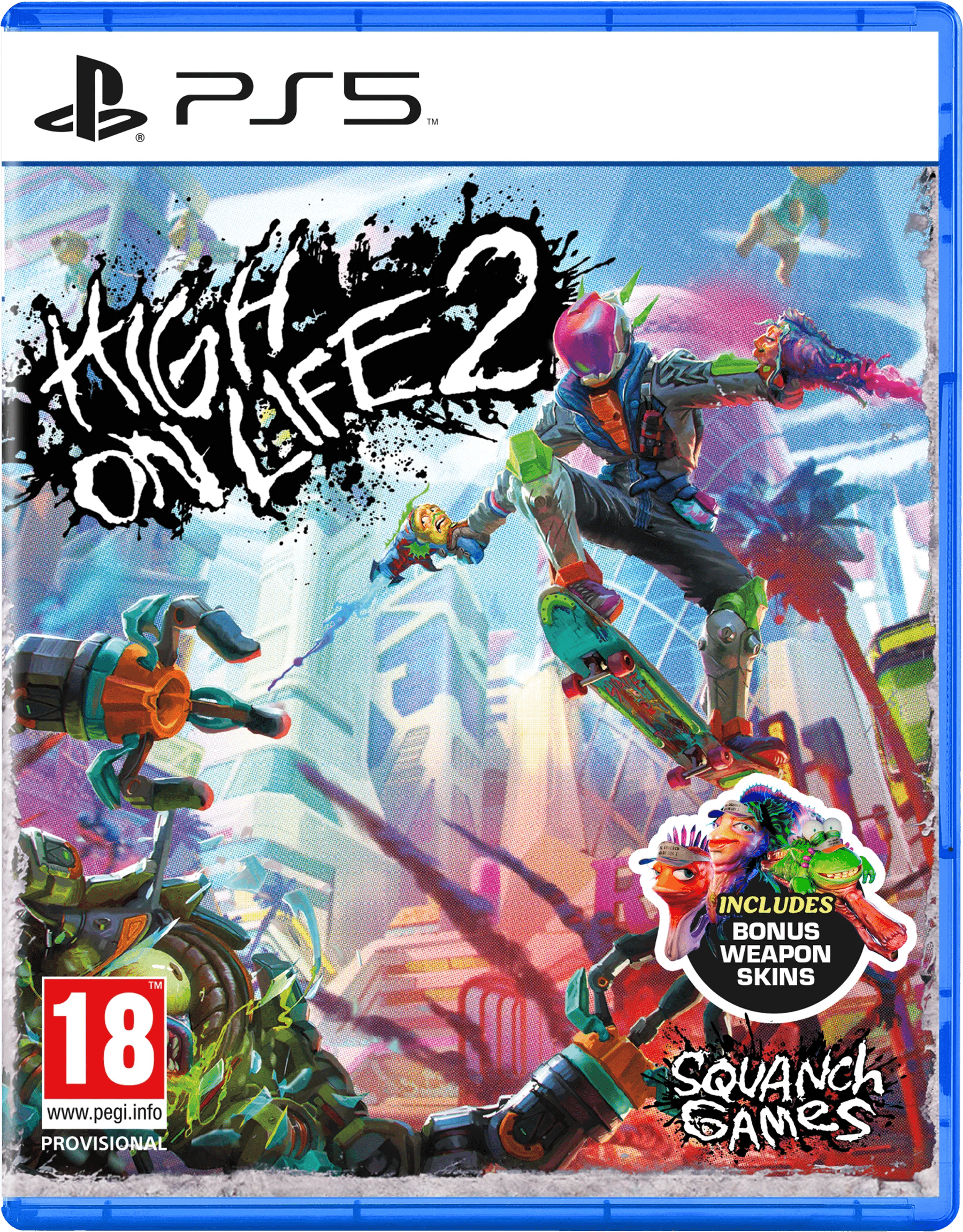 Sla terug met bijdehante praat wapens in High on Life 2 voor PlayStation 5. Jij bent de premiejager die een nieuwe alien bedreiging achternazit. Ren door neon steden en glibberige werelden, grap, spring en schiet je een weg naar de eindbaas. Wissel tussen wapens met eigen persoonlijkheden, gebruik vaardigheden slim en vind geheime routes voor extra loot. Je speelt deze game met maximaal 1 speler.