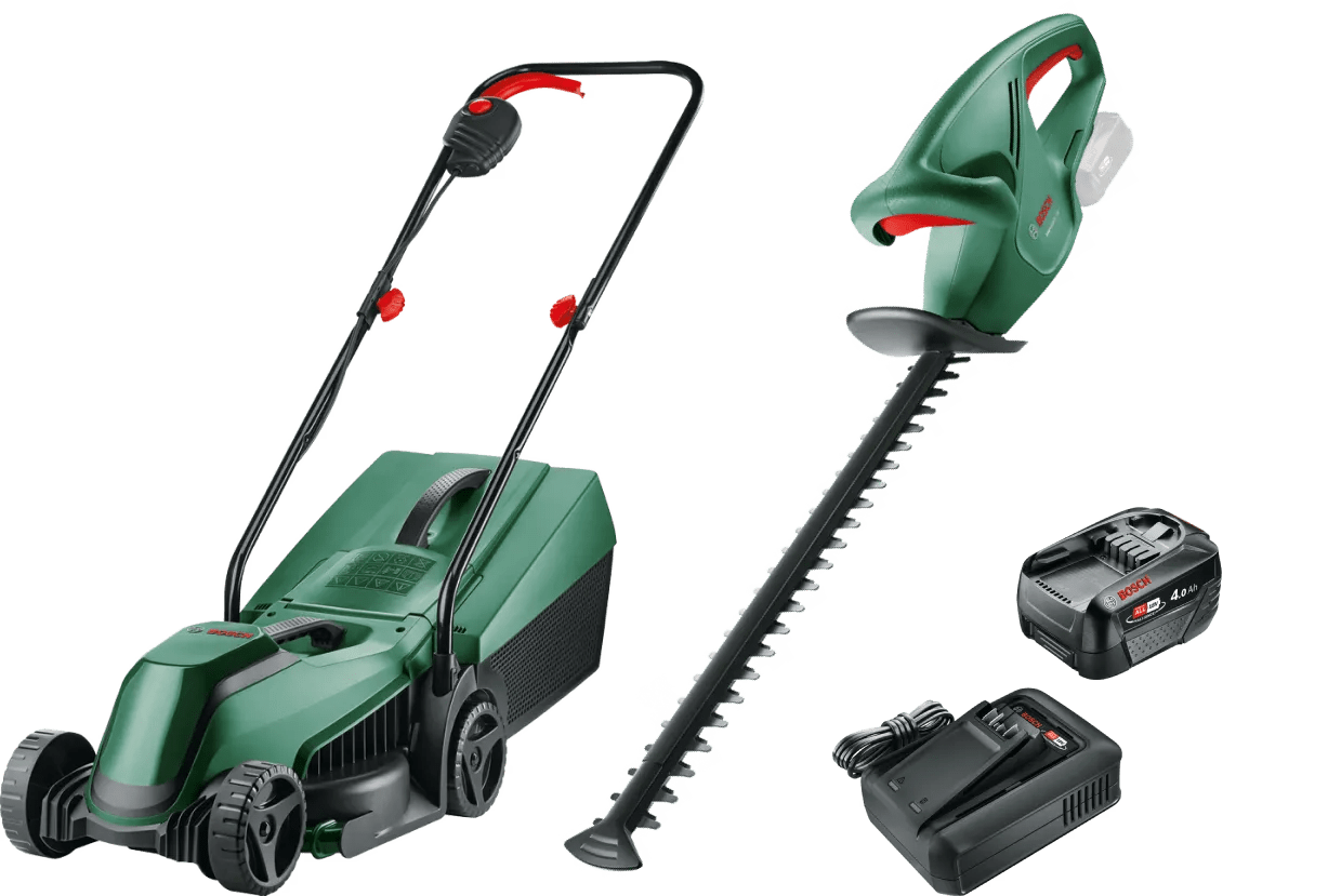 Bosch EasyMower 18V-32-200 + Bosch EasyHedgeCut 18-45 Li + Bosch Starterset 18V 4,0 Ah
