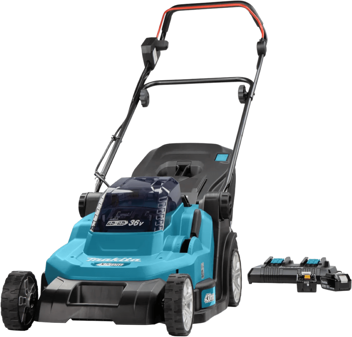 Maai direct je gras met de Makita DLM432PT2 incl. 5,0 Ah Accu (2x). Maai grasvelden tot 575 vierkante meter snel en makkelijk met de brede maaicirkel en sterke accu. Kies de gewenste maaihoogte in met de 13 verschillende standen. Met de mulching functie versnipper je het gras en blaas je het terug in de tuin als voeding. Het gras vang je op in de 40 liter opvangbak. Na gebruik klap je de duwboom van de grasmaaier in, zodat je het apparaat gemakkelijk opbergt. De grasmaaier is onderdeel van het Makita LXT 18V accu platform. Je gebruikt de accu dus ook op ander (tuin)gereedschap van hetzelfde platform.