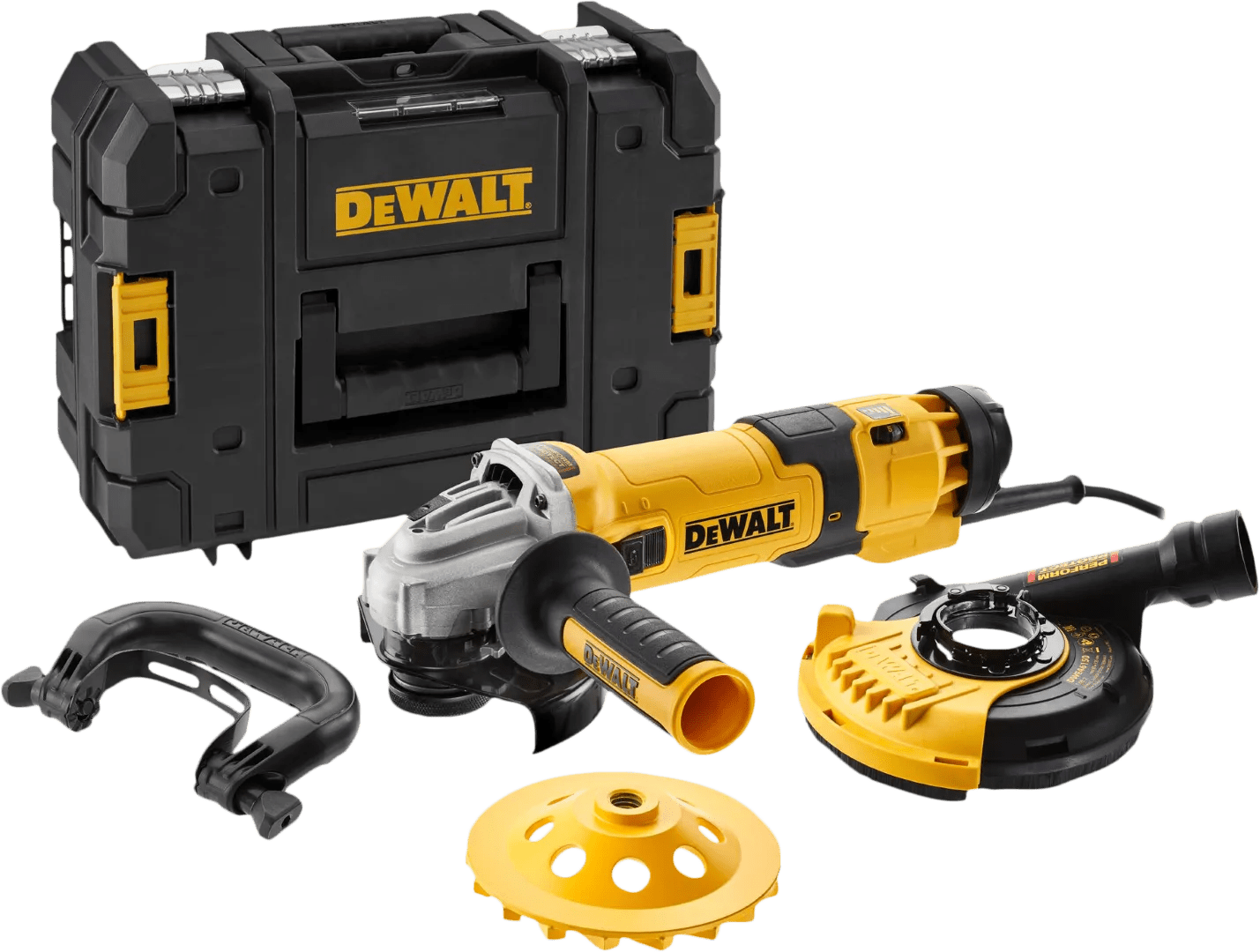 Met de elektrische DeWalt DWE4257KT-QS slijp je gemakkelijk door beton, natuursteen, keramiek en tegels. Het toerental komt door de softstart langzaam op gang, waardoor je meer controle houdt. Ook heeft de slijptol een anti terugslag beveiliging, waardoor je geen terugslag krijgt als de 125 millimeter slijpschijf vastzit. De machine start ook niet zomaar uit zichzelf op na een stroomonderbreking. Pas het toerental van de haakse slijper aan op jouw klus voor het beste resultaat. Ook onder zware belasting blijft de slijptol draaien op dezelfde snelheid. De machine gaat extra lang mee door de koolborstelloze moter. Ben je klaar met klussen? Dan berg je de DWE4257KT-QS haakse slijper netjes op in de meegeleverde TSTAK Kitbox.