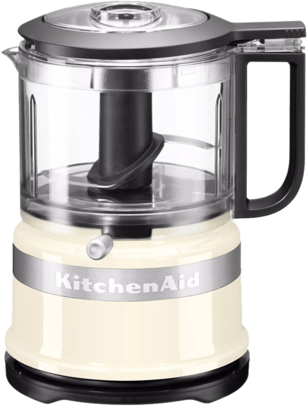 De KitchenAid 5KFC3516EAC Amandelwit is met zijn compacte formaat geschikt voor dagelijks gebruik in de keuken. Want hoewel de keukenmachine bijzonder licht en handzaam is, hakt, mixt of pureert het roestvrijstalen mes met gemak rauwe groenten, fruit, kruiden of noten. De keukenmachine beschikt over 2 snelheden en een pulse-stand om met extra kracht wat grotere ingrediënten fijn te malen. De mengkom heeft een inhoud van 0,83 liter en is af te sluiten met een deksel. Wil je tijdens het gebruik nog iets toevoegen? Via de opening in het deksel is dat zo gebeurd. Na gebruik gaat zowel de mengkom als de deksel gewoon de vaatwasmachine in en berg je de keukenmachine netjes op dankzij de snoeropbergmogelijkheid.