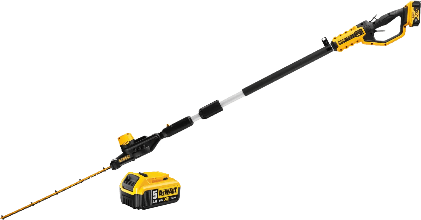 Met de DeWalt DCMPH566P1-QW + DeWalt DCB184-XJ snoei je zonder onderbrekingen hoge heggen. Je krijgt 2 accu's van 5,0 Ah, waardoor je altijd een reserve hebt. Schuif de steel uit tot 3,4 meter, zodat je zonder ladder de bovenkant van je heg bijwerkt. De heggenschaar heeft een lemmetlengte van 55 centimeter, waardoor je in één beweging grote stukken snoeit. Zo ben je snel klaar met je klus. Met de grote mesafstand snijd je takken tot 25 millimeter dik door. De heggenschaar en accu's horen bij het DeWalt XR 18V accu platform. Dat is handig, want je gebruikt de accu's daardoor ook op ander (tuin)gereedschap van dit platform.