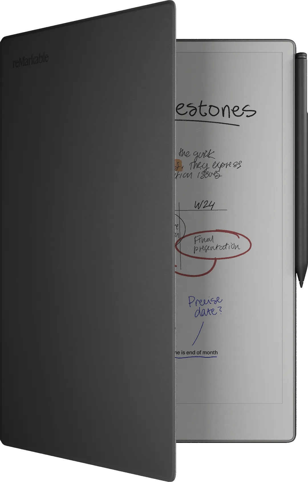 Je beschermt je digitale notitieblok aan de voorkant en achterkant met de reMarkable Paper Pro Book Folio Zwart Leer. Dit leren hoesje geeft je reMarkable Paper Pro een luxe uiterlijk. Een leren hoes gaat langer mee dan een hoes van kunststof en ziet er na lang gebruik nog mooi uit. Je klikt je digitale notitieblok magnetisch vast aan de book case. Klap de voorflap open en je kan aan de slag gaan met het maken van aantekeningen en notities. De zijkant van je reMarkable Paper Pro blijft vrij om je stylus magnetisch vast te klikken.