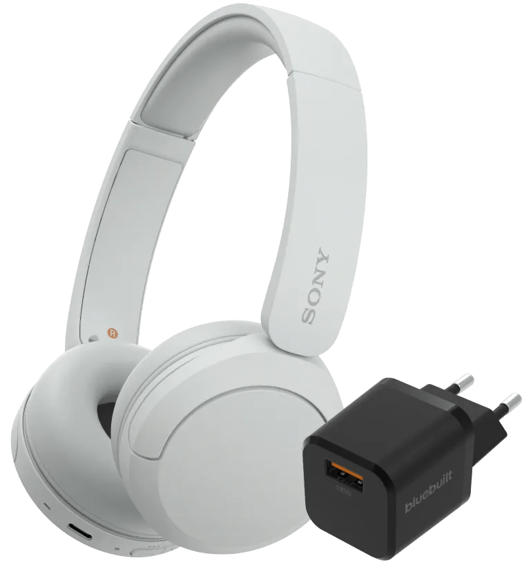 Sony WH-CH520 Wit + BlueBuilt Quick Charge Oplader met Usb A Poort 18W Zwart