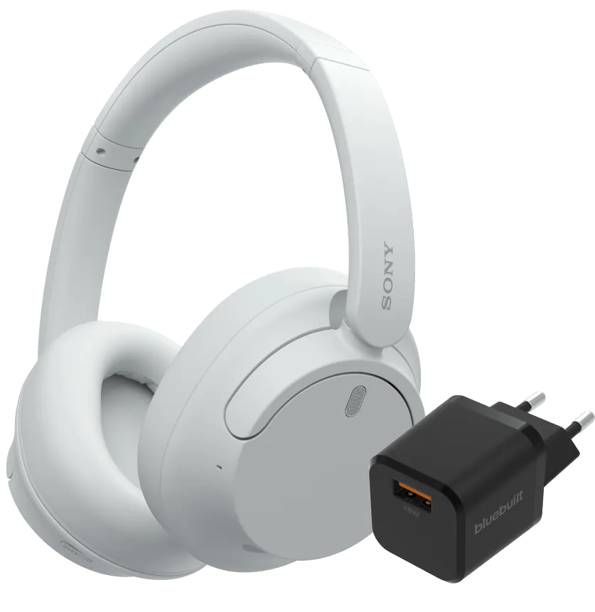Sony WH-CH720N Wit + BlueBuilt Quick Charge Oplader met Usb A Poort 18W Zwart