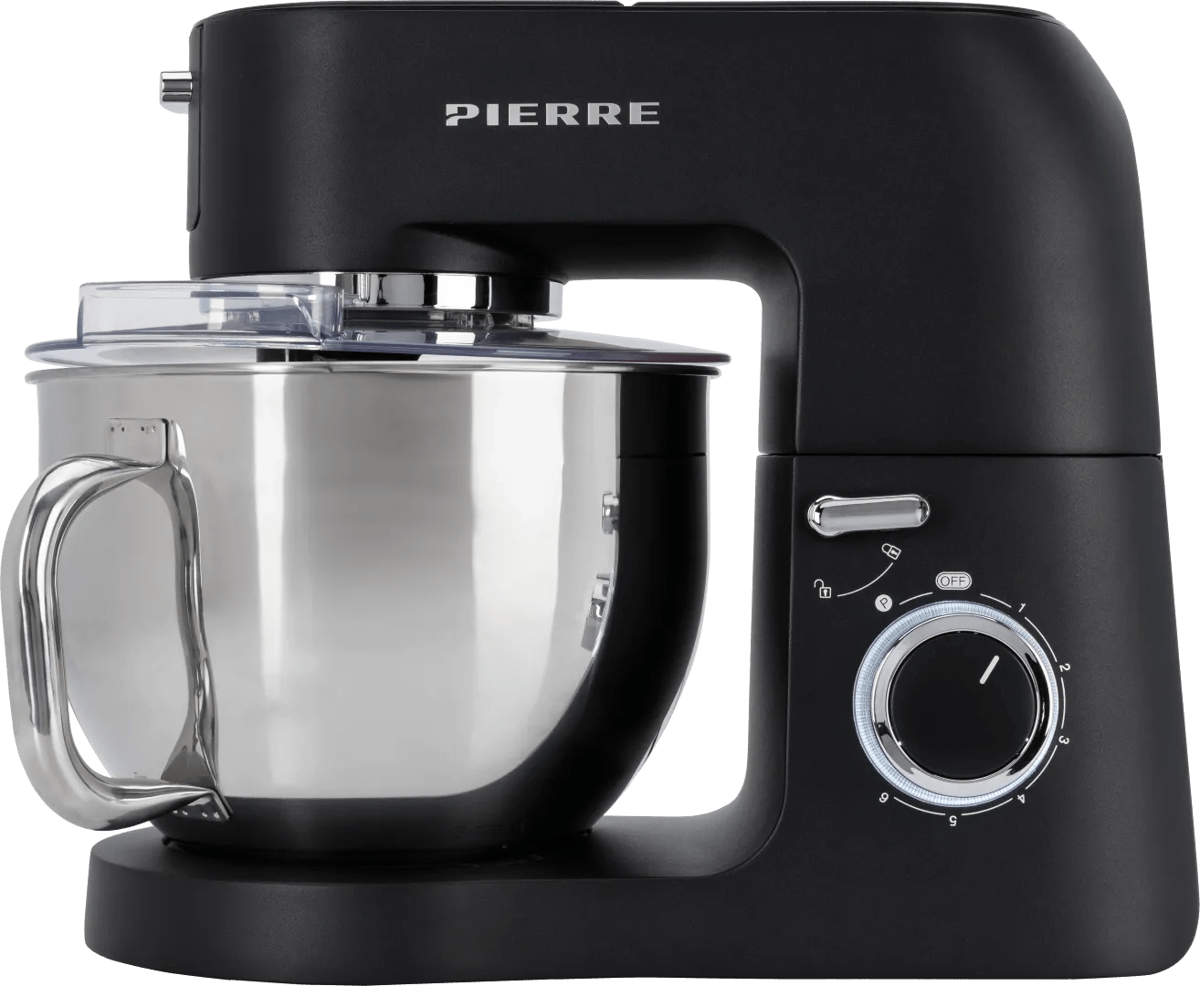 Met de Pierre Allround Mixer SM9000 Mat Zwart haal je een zeer krachtige keukenmixer in huis voor allerlei bereidingen. Dankzij het zeer krachtige vermogen kneed je zonder moeite zwaar deeg, zoals voor brood- of pizzadeeg. De motor oververhit niet. Je gebruikt de mixer dus gerust meerdere keren per dag. Je breidt je bereidingsmogelijkheden uit met de meegeleverde blender-, vleesmolen en raspopzetstukken. Zo maak je niet alleen deeg of beslag, maar bijvoorbeeld ook smoothies of geraspte groente met hetzelfde apparaat. Je maakt van een stuk vlees ook gemakkelijk gehakt. De softstart laat de snelheid rustig oplopen, zodat ingrediënten netjes in de kom blijven. Dat voorkomt spetters, waardoor je minder schoonmaakt.