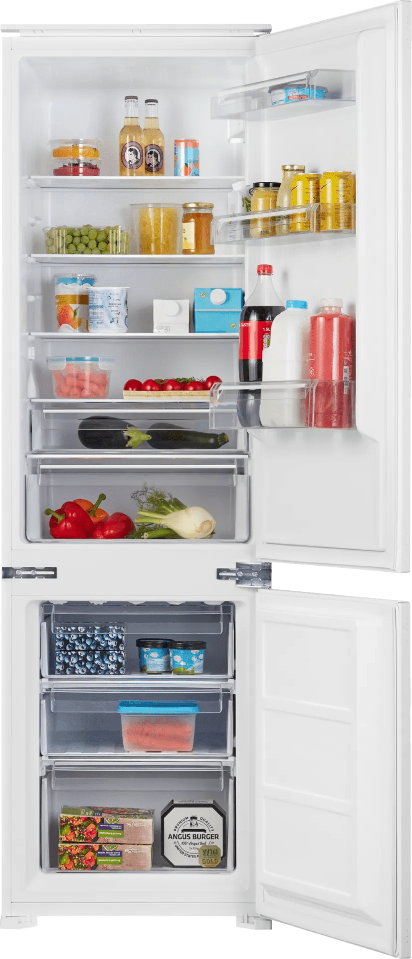 Je bewaart je wekelijkse boodschappen in de ETNA KCS7178 inbouw koel-vriescombinatie. Je gebruikt de SuperCool functie om de koelkast extra koud te zetten. Hierdoor blijven je nieuwe producten extra lang vers. Met mooi weer zet je gerust een karaf fruitwater in de koelkast. De plateaus zijn in hoogte verstelbaar, waardoor je gemakkelijk plek maakt voor grote dingen. Onder in de koel-vriescombinatie is het vriesgedeelte. Hier verdeel je je pizza's en brood over 3 lades. Haal je een grote voorraad diepvriesproducten? Zet dan de FastFreeze functie aan. Hierdoor behoudt je verse zalm al zijn smaak en vitaminen.