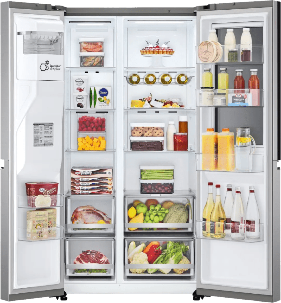 Met de InstaView van de LG GSXV80PZLE zie je direct wat er in de Amerikaanse koelkast ligt, zonder dat je de deur opent. Klop hiervoor 2 keer op het scherm. Dankzij de door-in-door pak je snel een pak sap uit de koelkast. Je opent namelijk een gedeelte van de deur, zodat de koude lucht in de koelkast blijft. Je hebt ruimte voor een grote voorraad boodschappen dankzij de 3 plateaus, 2 groentelades en 6 vriesvakken. Zo heb je altijd genoeg pizza’s en ovenfriet in huis. Onderin zit de Fresh Balancer vershoudzone, waar je de luchtvochtigheid gemakkelijk instelt. Zo bewaar je verse aardbeien of spruiten langer. Je tapt met de dispenser een glas ijskoud water of doet ijsblokjes in je ijskoffie.