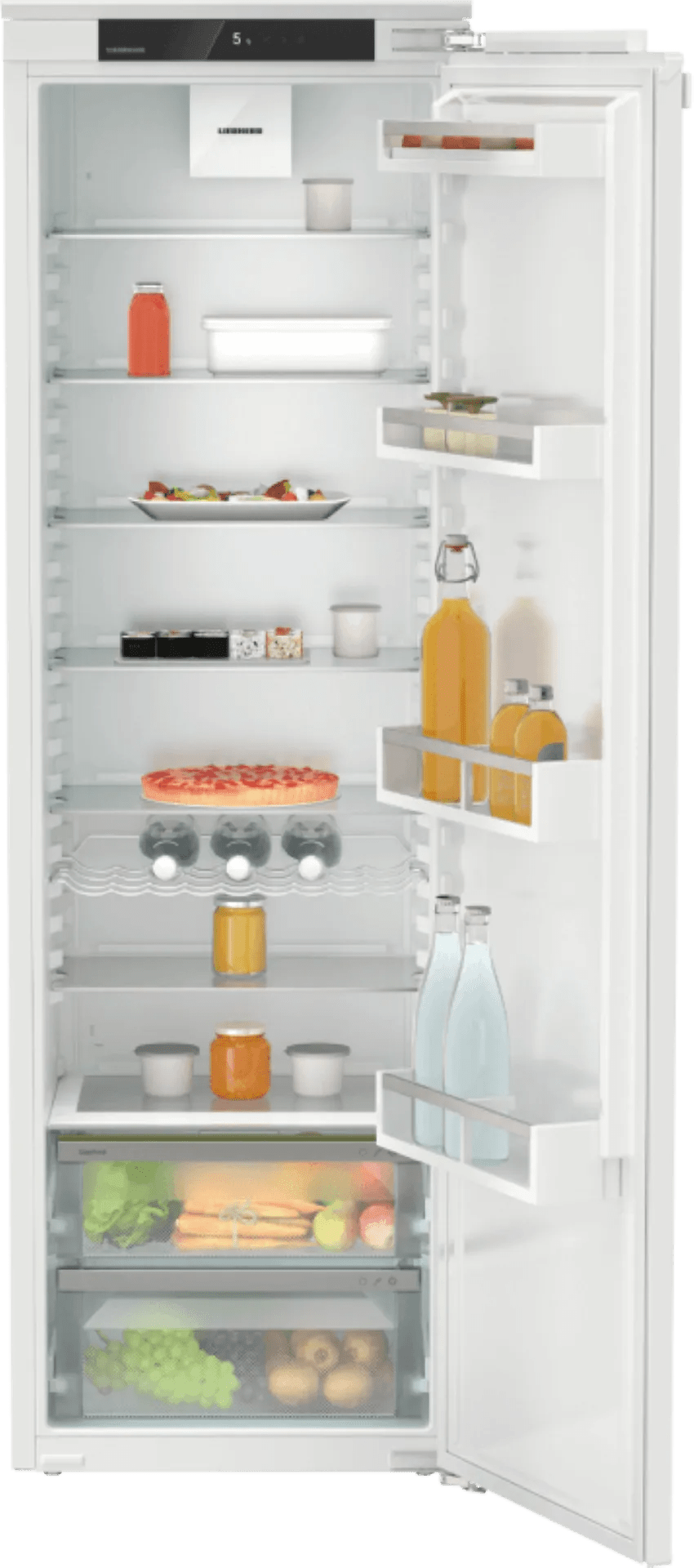 In deze ruime Liebherr IRd 5100-22 1-deurskoelkast bewaar je een grote voorraad boodschappen, die je flexibel opbergt. Je verdeelt je gebak, yoghurt en flessen saus over de 6 plateaus. Deze zijn uitneembaar en hebben verschillende inschuifhoogtes. Hierdoor maak je gemakkelijk extra ruimte voor bijvoorbeeld een hoge pan kippensoep. Onder in de koelkast vind je de EasyFresh lade. In deze groentelade blijven je groente en fruit langer vers door de aanpasbare luchtvochtigheid. Heb je een flinke voorraad boodschappen gehaald? Kies dan voor de superkoelen functie, zodat je extra snel van een koud blikje drinken geniet. De koelkast koelt al je producten zonder dat jij er last van hebt. Met een geluidsniveau van 33 decibel hoor je namelijk amper dat deze aanstaat.