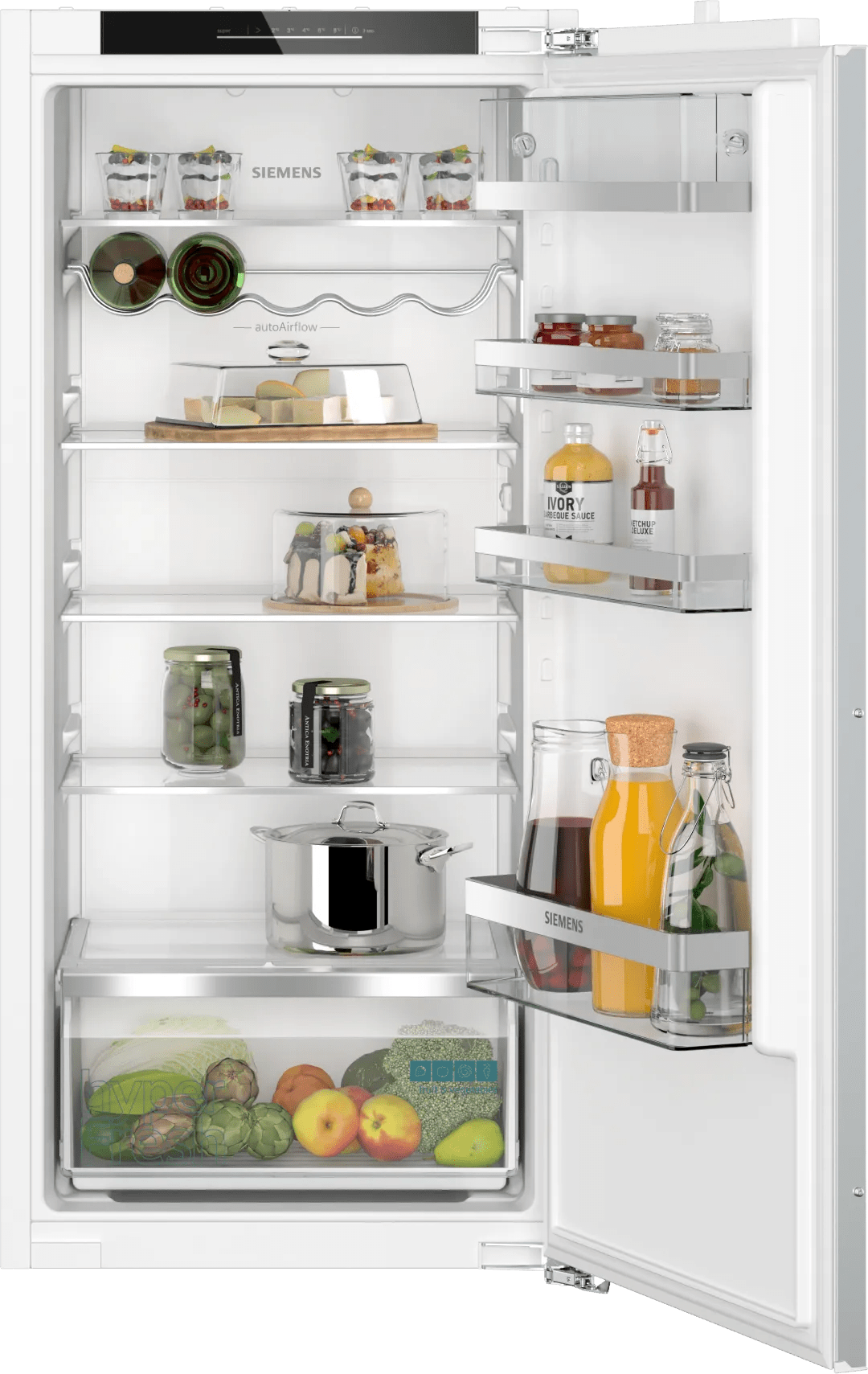 Je merkt amper dat de Siemens KI41RADD1 aanstaat. Met het geluidsniveau van 28 decibel is deze inbouw koelkast erg stil. Je hebt dus geen last van geluid tijdens het thuiswerken. Voor je komkommers en paprika's heeft deze 1-deurs koelkast een vershoudzone. Je stelt in deze HyperFresh lade de luchtvochtigheid naar wens in, zodat je minder boodschappen weggooit en alles langer vers blijft. Zodra je terug bent van de supermarkt, zet je de functie 'superkoelen' aan. Hiermee blijft de temperatuur hetzelfde, wanneer je een voorraad producten inruimt. Dankzij de zachtsluitende scharnieren sluit de deur van de koelkast gemakkelijk. Ook als deze vol staat met boodschappen.